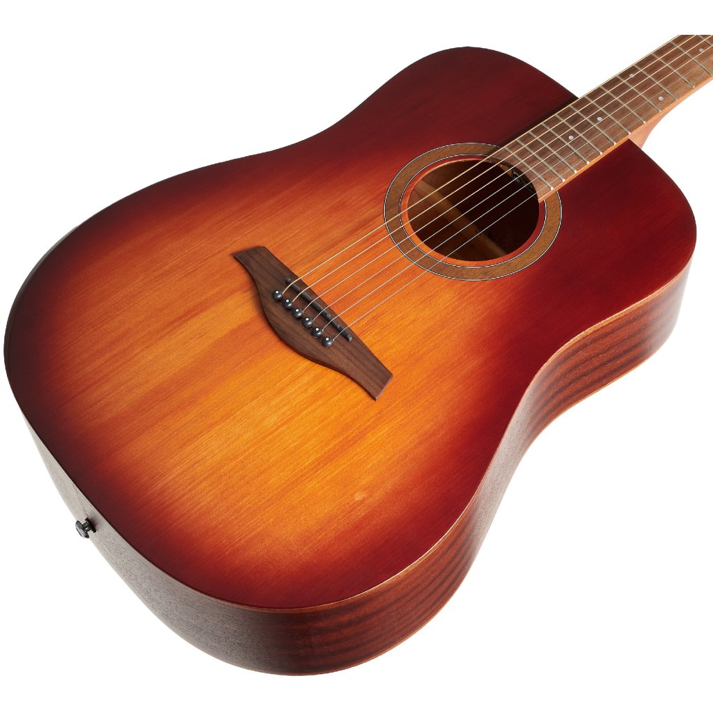 Soundsation EDGE ST DN-BSB je cenovo dostupná akustická gitara s veľkým rezontaním telom typu Dreadnought vhodná nielen pre začínajúcich hráčov. Predná doska gitary je zhotovená z preglejkového smreka, zadná doska a luby sú vyrobené z preglejky sapele. Ku krku z okoumé s príjemným „C“ profilom je prilepený orechový hmatník osadený dvadsiatimi pražcami. Struny sú uchytené v chrómovaných die-cast ladiacich mechanikách a orechovej kobylke. Štýlové spracovanie podčiarkuje finiš open pore brown sunburst satin a mahagónová lemovka a opierka ramena.