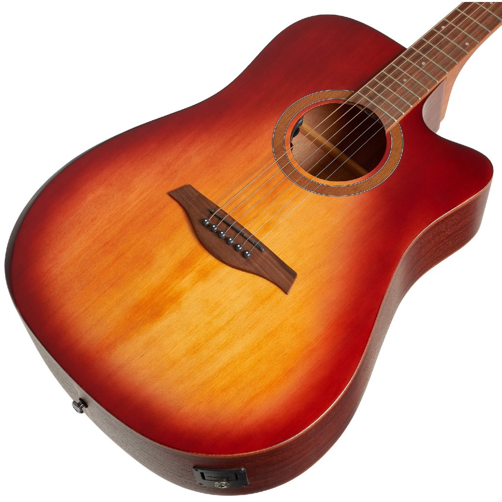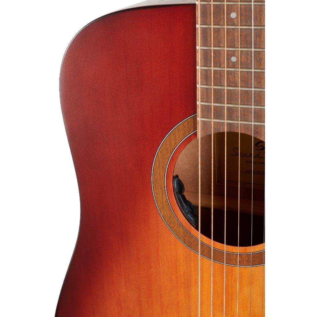 Soundsation EDGE ST DNCE-BSB je cenovo dostupná elektroakustická gitara s veľkým rezontaním telom typu Dreadnought vhodná nielen pre začínajúcich hráčov. Predná doska gitary je zhotovená z preglejkového smreka, zadná doska a luby sú vyrobené z preglejky sapele. Ku krku z okoumé s príjemným „C“ profilom je prilepený orechový hmatník osadený dvadsiatimi pražcami. Dohmat na vyšších polohách hmatníka uľahčuje spodný výrez tela. Struny sú uchytené v chrómovaných die-cast ladiacich mechanikách a orechovej kobylke. Štýlové spracovanie podčiarkuje finiš open pore brown sunburst satin a mahagónová lemovka a opierka ramena. Možnosť ozvučenia ponúka preamp Fishman GT-1 s ovládačmi Volume a Tone v ozvučnicovom otvore nástroja.