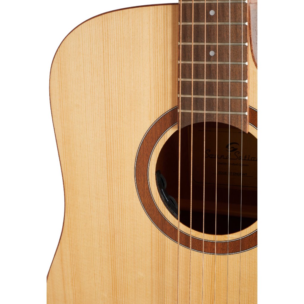 Soundsation EDGE ST DNCE-NT je cenovo dostupná elektroakustická gitara s veľkým rezontaním telom typu Dreadnought vhodná nielen pre začínajúcich hráčov. Predná doska gitary je zhotovená z preglejkového smreka, zadná doska a luby sú vyrobené z preglejky sapele. Ku krku z okoumé s príjemným „C“ profilom je prilepený orechový hmatník osadený dvadsiatimi pražcami. Dohmat na vyšších polohách hmatníka uľahčuje spodný výrez tela. Struny sú uchytené v chrómovaných die-cast ladiacich mechanikách a orechovej kobylke. Štýlové spracovanie podčiarkuje finiš open pore natural satin a mahagónová lemovka a opierka ramena. Možnosť ozvučenia ponúka preamp Fishman GT-1 s ovládačmi Volume a Tone v ozvučnicovom otvore nástroja.