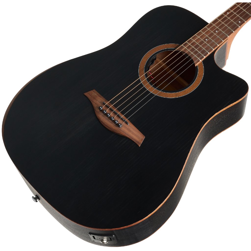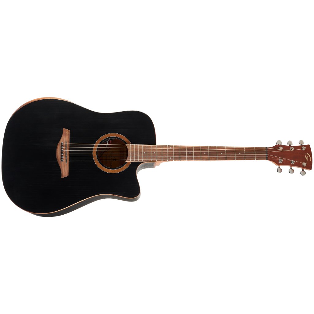 Soundsation EDGE ST DNCE-TBK je cenovo dostupná elektroakustická gitara s veľkým rezontaním telom typu Dreadnought vhodná nielen pre začínajúcich hráčov. Predná doska gitary je zhotovená z preglejkového smreka, zadná doska a luby sú vyrobené z preglejky sapele. Ku krku z okoumé s príjemným „C“ profilom je prilepený orechový hmatník osadený dvadsiatimi pražcami. Dohmat na vyšších polohách hmatníka uľahčuje spodný výrez tela. Struny sú uchytené v chrómovaných die-cast ladiacich mechanikách a orechovej kobylke. Štýlové spracovanie podtrhuje finiš open pore transparent black satin a mahagónová lemovka a opierka ramena. Možnosť ozvučenia ponúka preamp Fishman GT-1 s ovládačmi Volume a Tone v ozvučnicovom otvore nástroja.