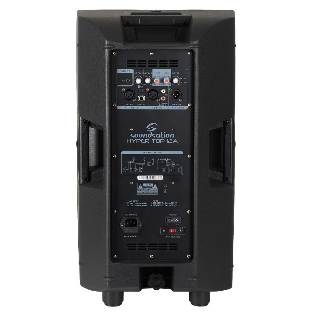 Dvojpásmový aktívny reproduktor Hyper Top od spoločnosti Soundsation je výsledkom dlhoročných skúseností spoločnosti v oblasti prenosných zvukových systémov. Reproduktor je vyrobený z robustného a ľahkého polypropylénového materiálu, ktorý dopĺňa kovová mriežka. Vnútorná časť plastového šasi je potom vyplnená penovou izoláciou pre čo najlepšiu produkciu zvuku. Hyper Top 12A je vhodný na ozvučenie interiérov a exteriérov, divadelných predstavení, komorných a akustických koncertov.