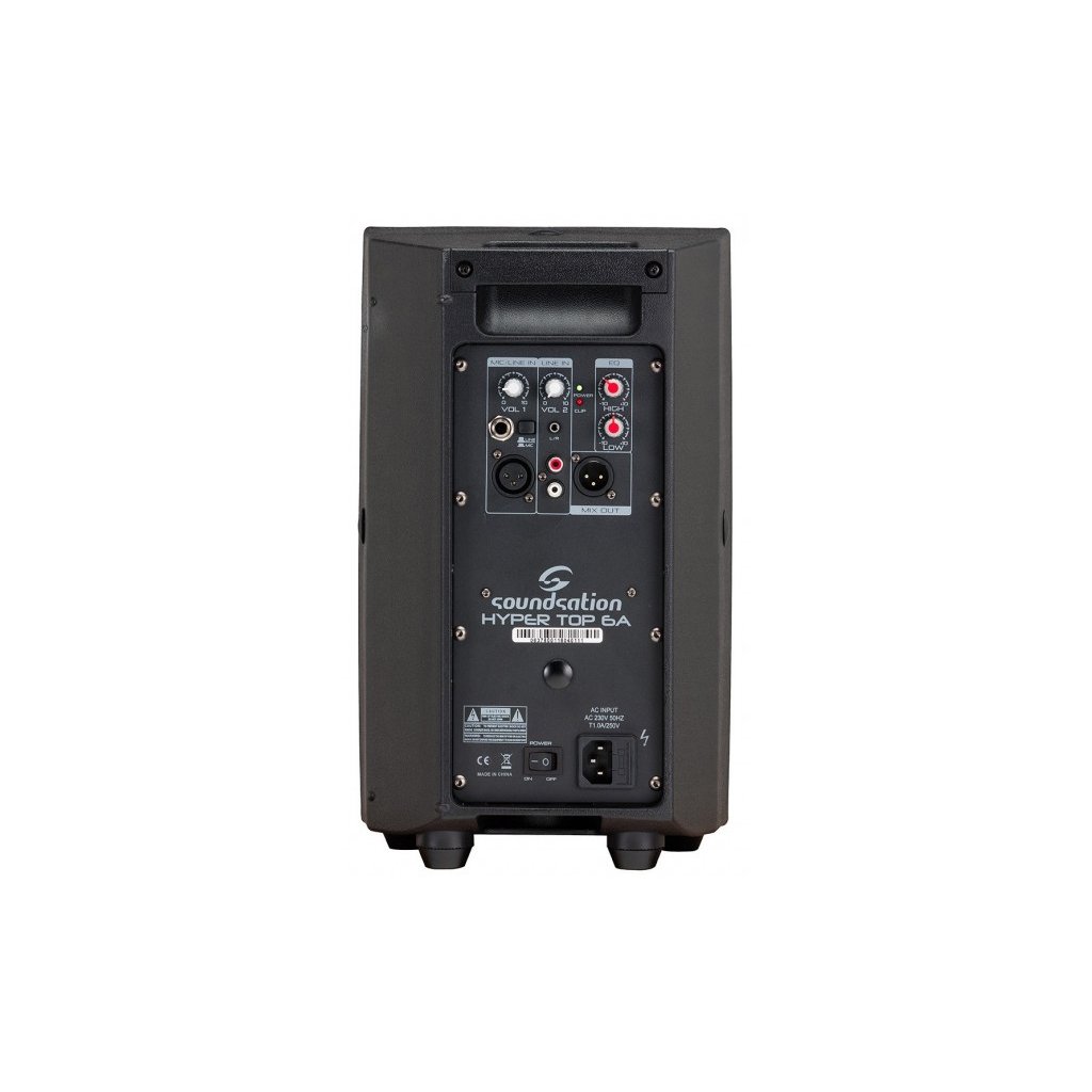 Rad HYPER je výsledkom dlhoročných skúseností spoločnosti Soundsation v oblasti vývoja a výroby prenosných zvukových systémov. Tento rad reproduktorov je vybavený robustnou, ľahkou a štýlovou polypropylénovou skriňou s celokovovou mriežkou a akustickou penou na ochranu meničov. Špičkový design podľa najnovších priemyselných štandardov ponúka ako skvelý vzhľad, tak optimálnu kvalitu zvuku. Hyper Top 6A je dvojpásmový aktívny reprobox osadený zosilňovačom triedy AB s výkonom 200 W, ktorý budí 6” woofer a 1” menič vysokého frekvenčného pásma. Na zadnom terminále je k dispozícii mikrofónny aj linkový vstup (vrátane možnosti pripojenia stereo signálu). Reprobox je vybavený štyrmi montážnymi bodmi M8 rozmiestnenými na každej strane, rukoväťou na hornej strane a štandardným otvorom D 36 mm pre montáž na dištančnú tyč či statív.