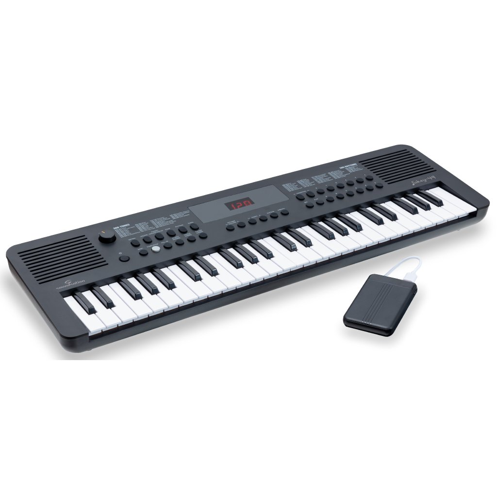 Kompaktní keyboard Soundsation JUKEY-49 je ideální volbou zejména pro děti a mladé hudebníky, kteří s hrou na klávesové nástroje teprve začínají. Je vybaven 49 klávesami mini velikosti a díky jeho kompaktním rozměrům (642 x 200 x 68 mm, 1,8 kg) jej ocení také muzikanti, kteří hledají nástroj na cesty. Keyboard lze navíc napájet pomocí přiložené power banky s kapacitou 5000 mAh, takže je na cestování jako dělaný.