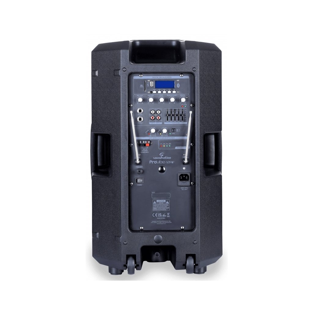 Séria Soundsation ProVibe Air zahŕňa modely aktívnych reproduktorov napájaných batériami s bezdrôtovým prenosom a diaľkovým ovládaním. Tieto flexibilné PA reproduktory sú vybavené profesionálnymi funkciami, moderným vzhľadom a skvelým zvukom. Reproduktory Provibe Air predstavujú úplnú slobodu bez kompromisov. Vnútornú 6-7 hodinovú batériu možno vymeniť a dobíjať pomocou 15 V adaptéra, ale aj pripojením 12 V autobatérie k pripraveným svorkám s polaritou +/-. Reproduktory radu ProVibe Air vynikajú výnimočnou konektivitou; v rámci interného analógového mixu môžete pripojiť dynamický mikrofón a rôzne signály linkovej úrovne a integrovaný jednokanálový (ProVibe 8Air, 10Air) alebo dvojkanálový (ProVibe 12Air, 15Air) bezdrôtový prijímač VHF umožňuje pripojiť bezdrôtové dynamické mikrofóny, ktoré sú súčasťou dodávky. ProVibe Air vyniká možnosťami prehrávania médií vďaka zabudovanému multimediálnemu systému. Samozrejmosťou je pripojenie cez Bluetooth, ale aj prehrávanie z USB, SD kariet a linkových vstupov. V rámci pripojenia Bluetooth je potom možné celý systém ovládať prostredníctvom bezplatnej mobilnej aplikácie Go-Sound Air (dostupná pre Android, iOS), ktorá vám umožní prístup ku kompletnému nastaveniu systému vrátane výberu vstupov, ekvalizácie, prehrávača a ďalších funkcií. V rámci nákupu systému ProVibe 12Air získate dva dynamické mikrofóny so zabudovanými bezdrôtovými vysielačmi a infračervené diaľkové ovládanie. Elegantný a profesionálny vzhľad reproboxu dopĺňa pevná polypropylénová konštrukcia s teleskopickou rukoväťou a kolieskami na jednoduchú prepravu. Reproduktor umožňuje použitie ako PA prvok aj ako podlahový monitor s možnosťou umiestnenia pod uhlom 45° alebo 25°. Reprobox ponúka aj rôzne možnosti montáže vrátane štandardného 36 mm otvoru na montáž na statív a troch bodov M8 na zavesenie.