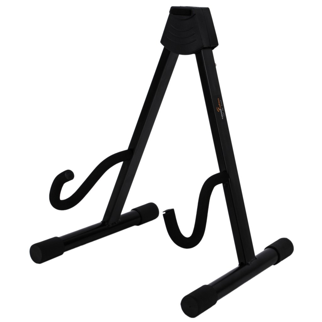Tento gitarový stojan typu A s oceľovou konštrukciou je vhodný pre väčšinu elektrických gitár/basgitár. Časti, ktoré sú v kontakte s nástrojmi, sú pogumované, aby sa zabránilo poškodeniu laku gitár. V zloženom stave zaberá minimum miesta. Vďaka tomu je vhodnou voľbou na domáce hranie a živé vystúpenia spojené s cestovaním.