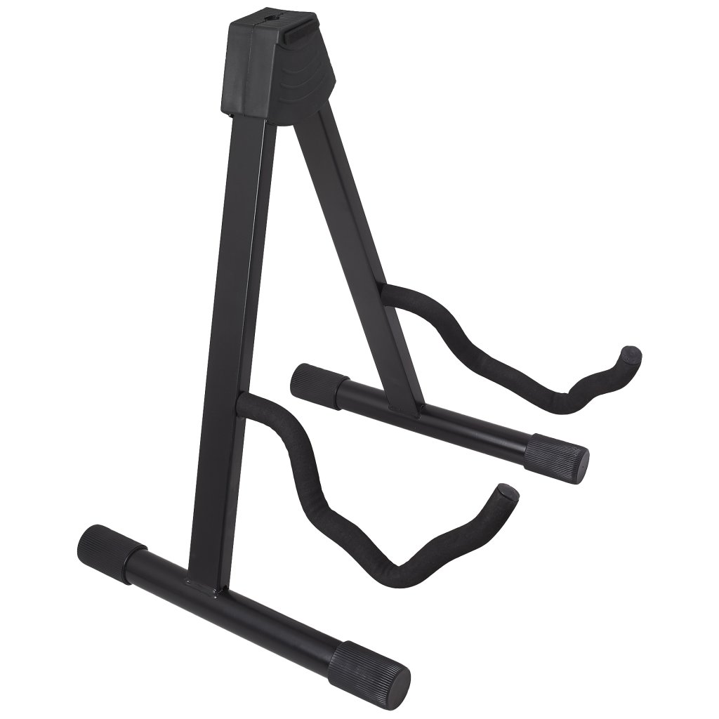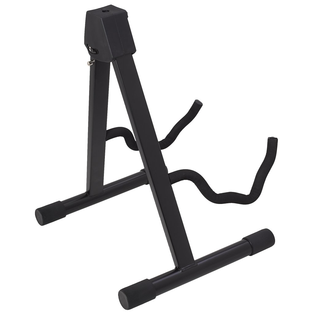 Tento univerzálny gitarový stojan typu A s oceľovou konštrukciou je vhodný pre všetky typy gitár/basgitár. Časti, ktoré sú v kontakte s nástrojmi, sú pogumované, aby sa zabránilo poškodeniu gitár. V zloženom stave zaberá minimum miesta. Vďaka tomu je vhodnou voľbou na domáce hranie a živé vystúpenia spojené s cestovaním.