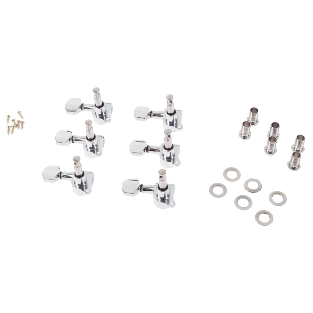 Sada chrómových ladičiek pre elektrickú/akustickú gitaru. Balenie obsahuje šesť kusov (šesť za sebou).