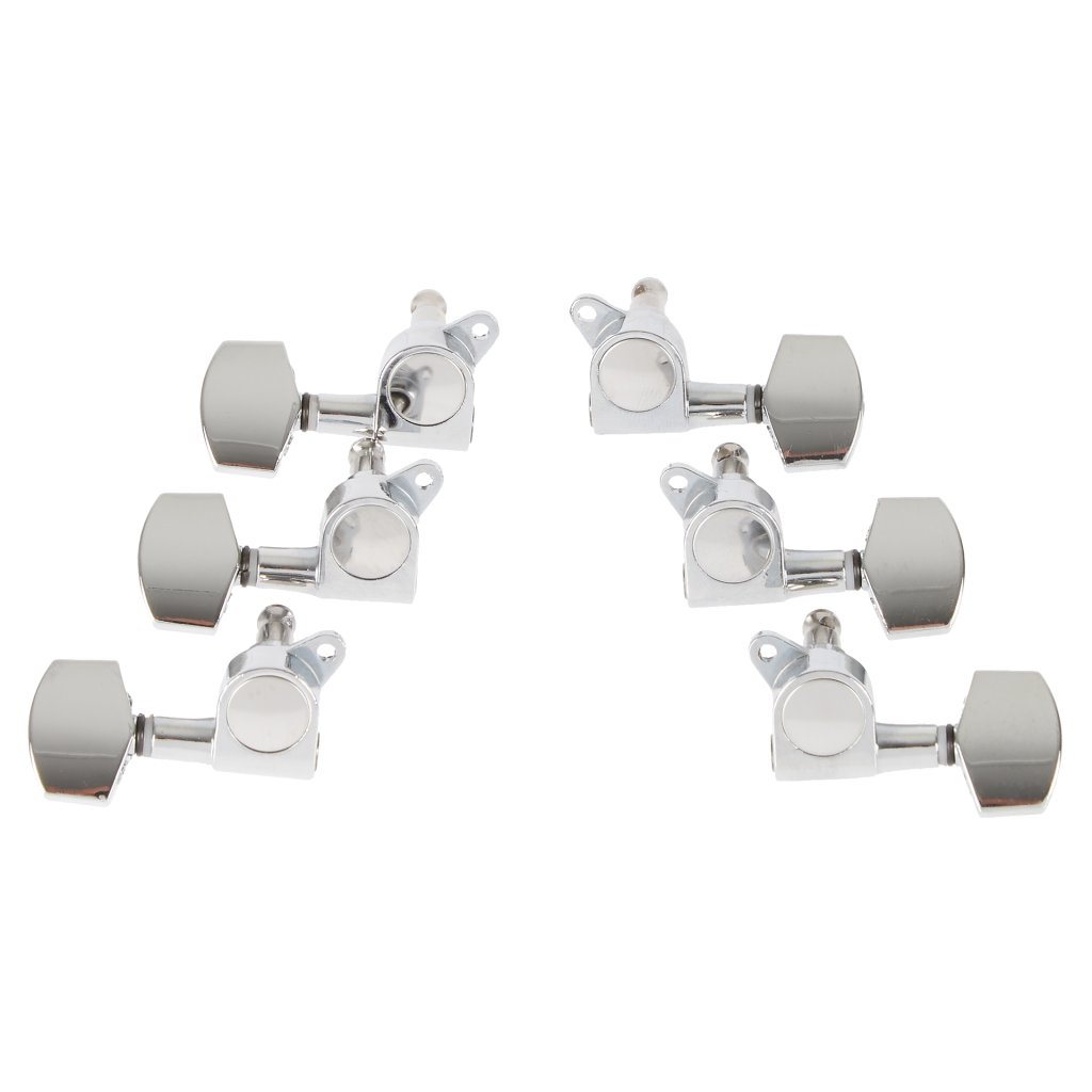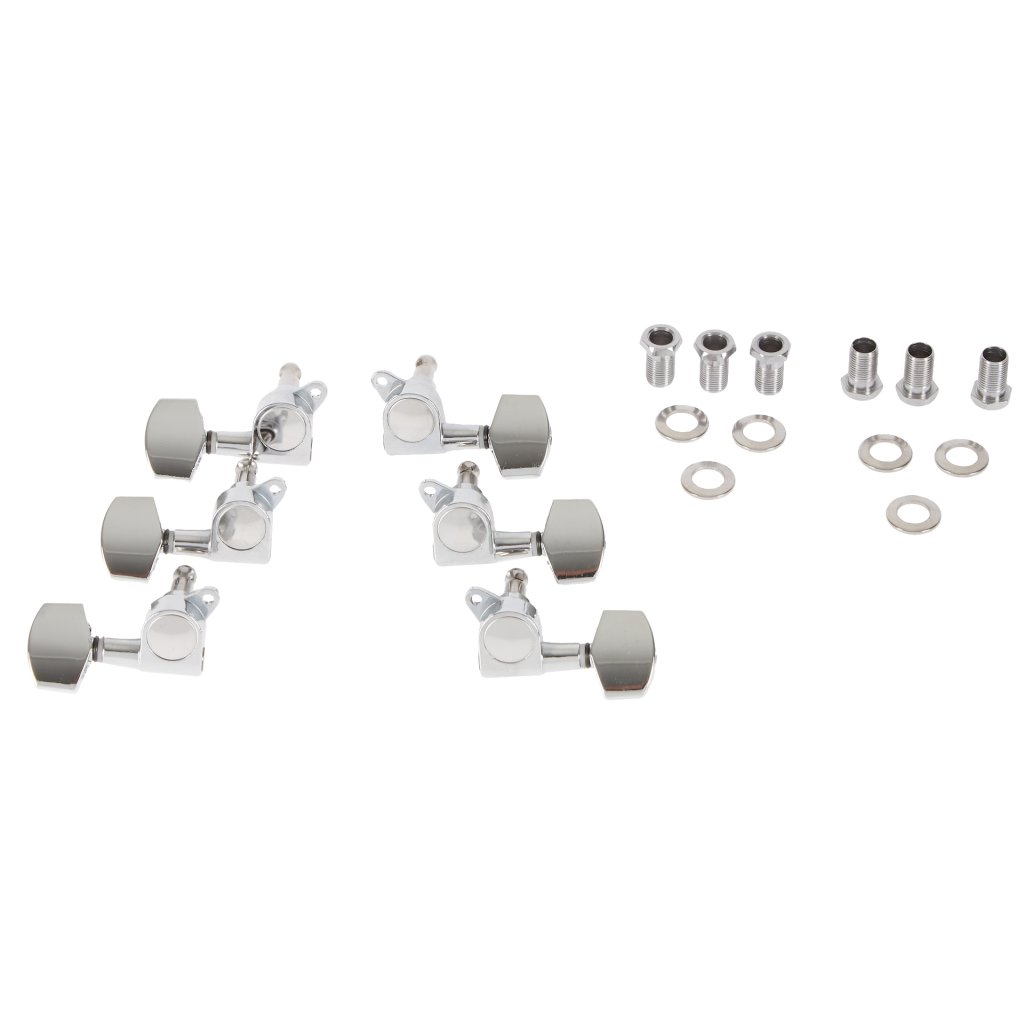 Sada chrómových ladičiek pre elektrickú gitaru. Balenie obsahuje šesť kusov (tri pravé a tri ľavé).