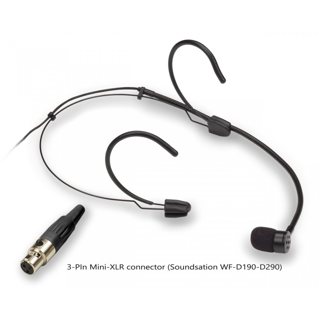Hlavový mikrofón s kardioidnou mikrofónovou kapsulou vhodný pre moderátorov, rečníkov a spevákov. Mikrofón sa vyznačuje robustnou konštrukciou, krištáľovo čistým prenosom hlasu bez okolitého hluku alebo šumu a možno ho pripevniť na ľavé alebo pravé ucho - podľa vašich preferencií. Mikrofón je tiež vodotesný, takže je ideálny pre inštruktorov fitnes. Súčasťou balenia je vetruvzdorný kryt, 1,5 m kábel s 3-pinovým konektorom mini XLR (pre Soundsation WF-D190 a D290) a puzdro na bezpečnú prepravu.