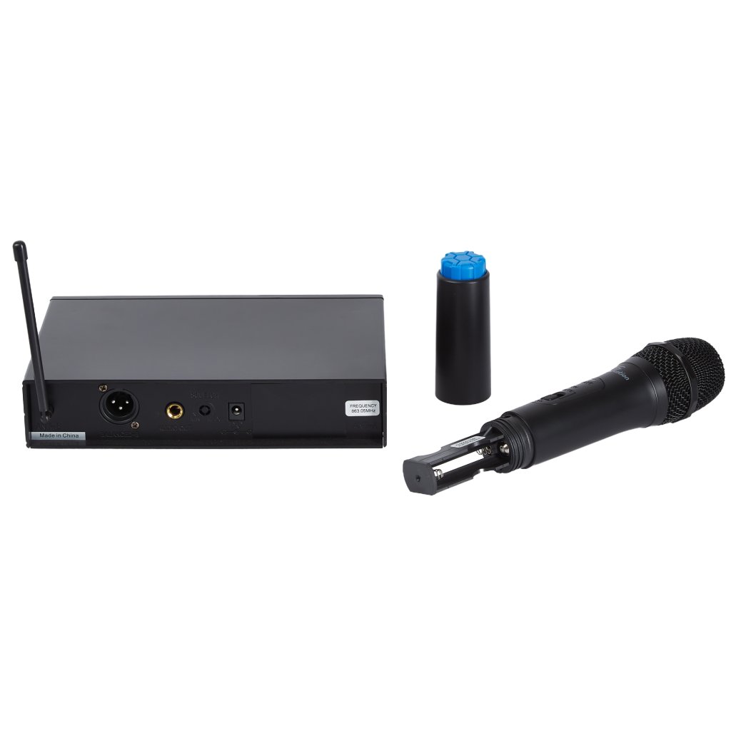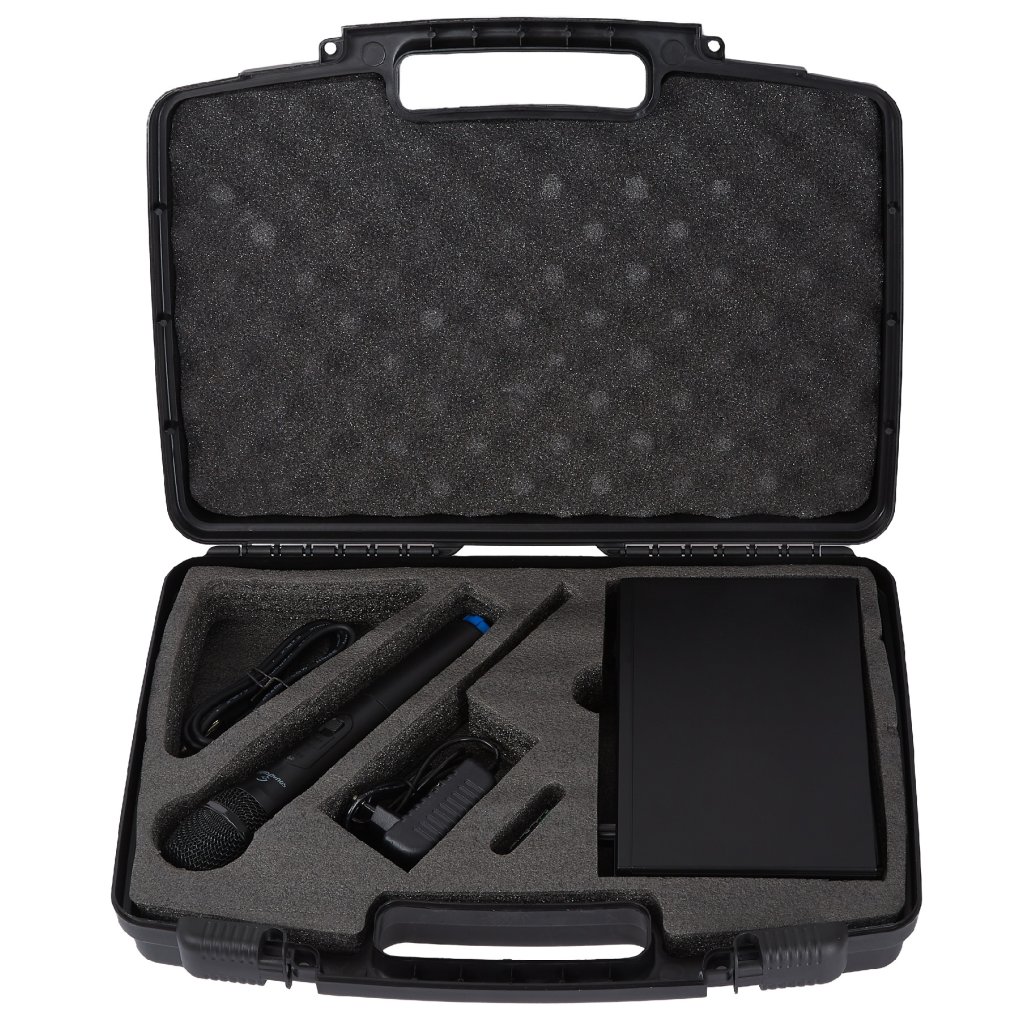 Bezdrôtový ručný mikrofónový systém pre každého, kto vyžaduje spoľahlivý, vysokokvalitný zvuk s používateľsky prívetivým ovládaním plug and play. Systém má dosah až 30 metrov a je užitočný najmä na prezentácie a iné aplikácie s nízkou potrebou údržby. Dynamický mikrofón má kardioidnú charakteristiku. Vysielač môže fungovať až 5 hodín. Celá súprava sa dodáva v kufríku.