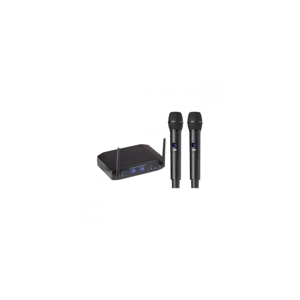 Bezdrôtový duálny ručný mikrofónový systém vhodný pre každého, kto vyžaduje spoľahlivý, vysokokvalitný zvuk s používateľsky prívetivým ovládaním Plug & Play. Systém má dosah až 50 metrov a je užitočný najmä na prezentácie, karaoke párty a iné aplikácie nenáročné na údržbu. Vďaka IR synchronizácii je prepojenie medzi prijímačom a vysielačmi veľmi jednoduché a rýchle. Dynamické mikrofóny majú kardioidnú charakteristiku a sú vybavené vysokokvalitným predzosilňovačom a jednotkou DSP pre krištáľovo čistý prednes.
