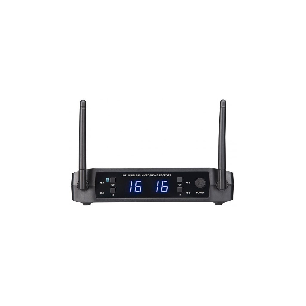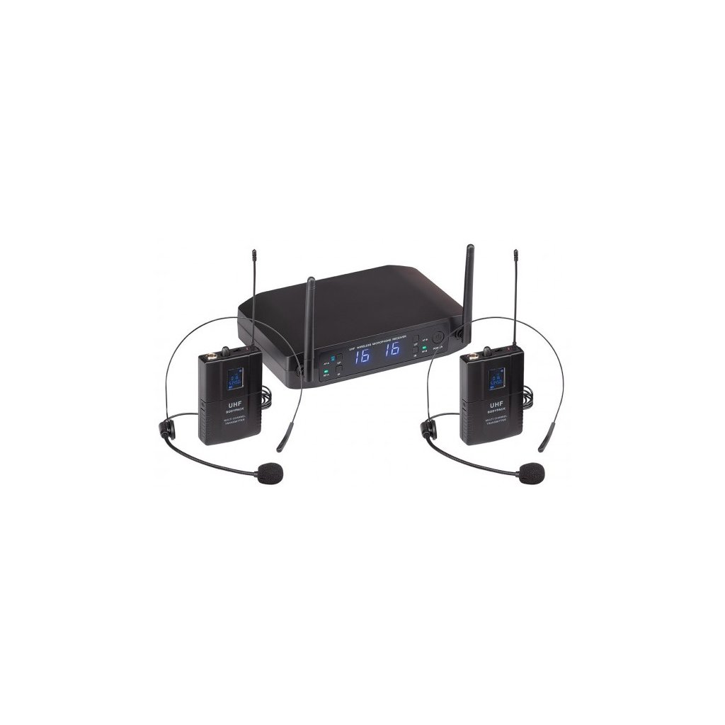 Soundsation WF-U216PP je duálna 16-kanálová bezdrôtová súprava UHF, ktorá pozostáva z 2 náhlavných mikrofónov, 2 bodypack vysielačov a ľahko nastaviteľného prijímača.