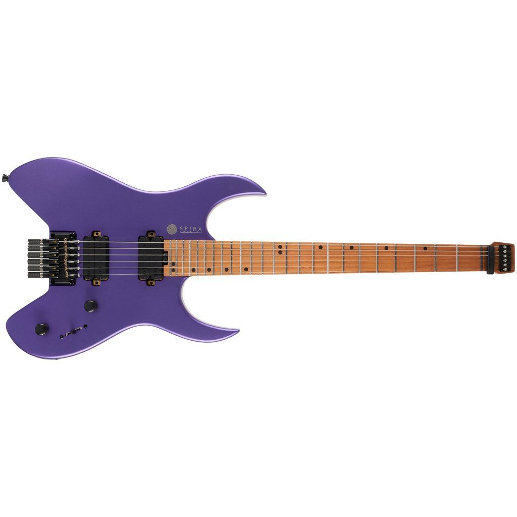 Značka Spira Guitars ponúka cenovo dostupné elektrické gitary v modernom dizajne, vybavené výkonnými snímačmi, určené pre hráčov hard a heavy štýlov. Ide o projekt ľudí z tábora Jet Guitars, teda značky známej výrobou „lacných“ gitár v tradičných dizajnoch. V prípade gitár Spira Guitars sa počíta len so šťavnatým high-gain skreslením a „full chug“. Telo štýlovej bezhlavovej elektrickej gitary S-400 Headless MPP je vyrobené z „pečeného“ topoľa (roasted poplar). Krk s príjemným profilom Modern D a hmatník osadený dvadsiatimi štyrmi pražcami veľkosti Jumbo sú vyrobené z pečeného kanadského javora (roasted maple). Vďaka tepelnej úprave tela, krku a hmatníka je drevo gitary stabilnejšie. Dva firemné humbuckery Spira Villain s keramickými magnetmi a silnejším výkonom poskytujú gitare šťavnatý zvuk, ktorý oceníte najmä pri nastavení s vysokým zosilnením. Nastavenie zvuku je možné ovládať pomocou štandardných ovládačov. Struny sú upevnené v mechanikách špeciálne navrhnutých pre bezhlavové gitary. Štýlový vzhľad podčiarkuje matný lak a čierny hardware.