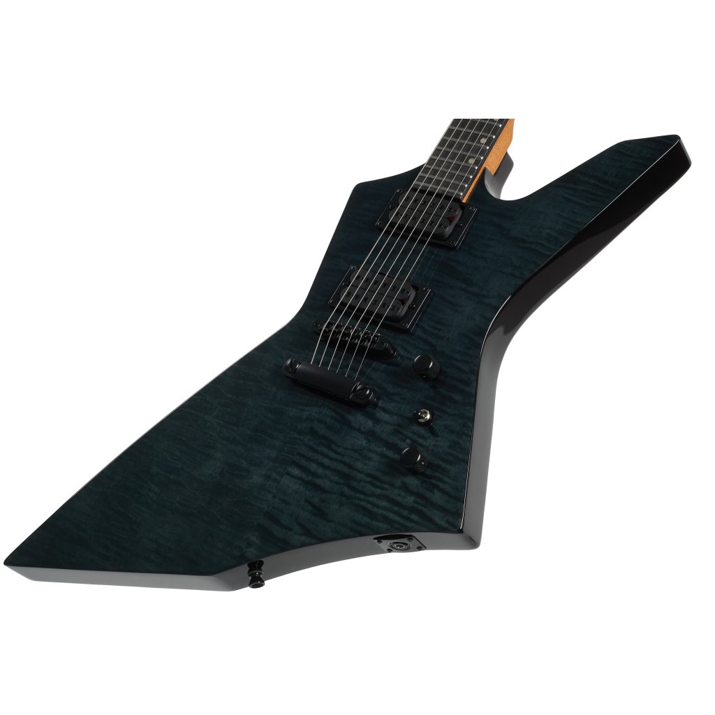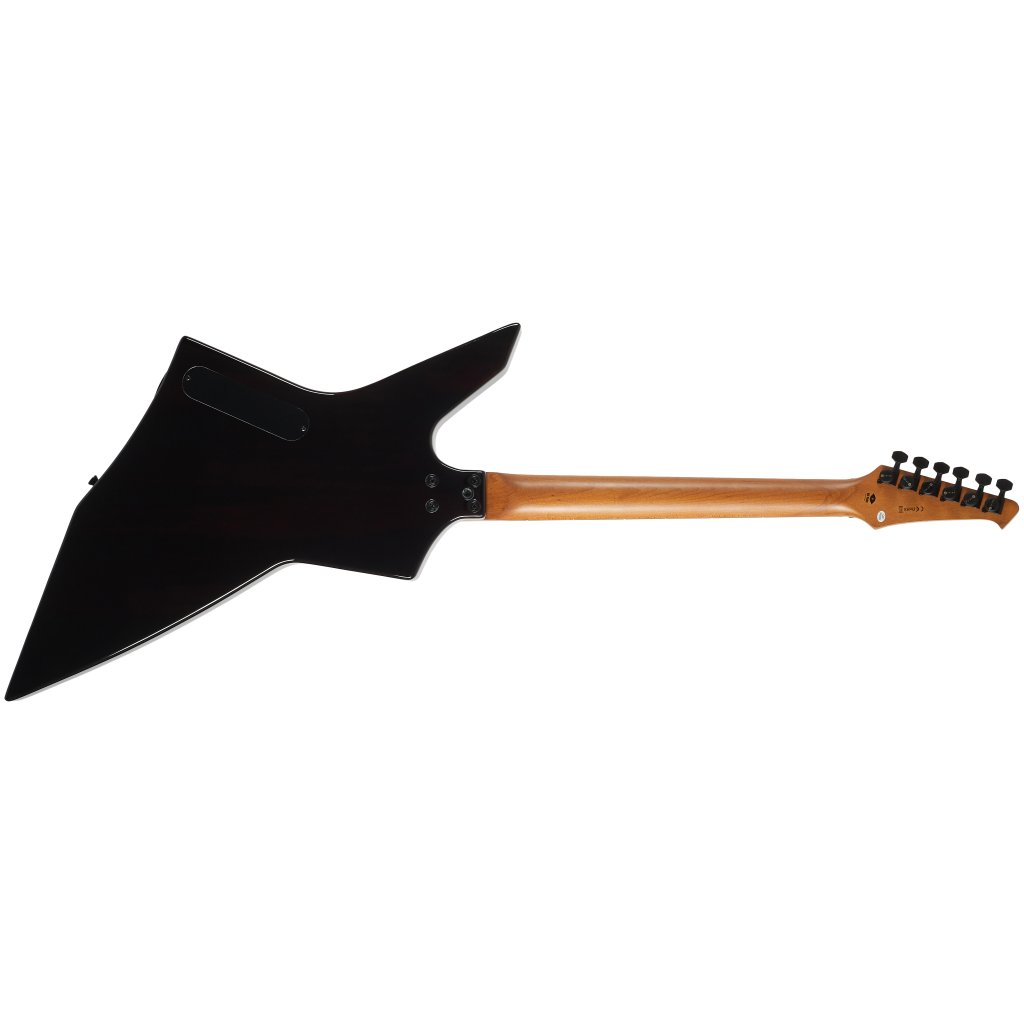 Elektrická gitara X-500 TBK E vychádza z geometrie modelov Explorer. Mahagónové telo nástroja zdobí dyha z dyhovaného javora. Zrno javora je zvýraznené lesklým lakom a povrchovou úpravou Trans Black. Krk vyrobený z kanadského praženého javora s profilom Modern D je spojený s hmatníkom z moderného kompozitného materiálu v ebenovom prevedení a osadený dvadsiatimi štyrmi jumbo pražcami.