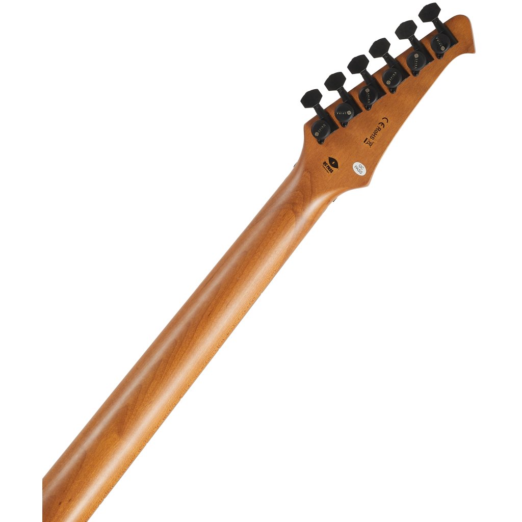 Dva patentované humbuckery Spira Villain s keramickými magnetmi a silnejším výstupom dodávajú gitare šťavnatý zvuk, ktorý oceníte najmä pri nastavení high-gainu. S nastavením zvuku je možné manipulovať pomocou štandardných ovládačov. Struny sú uchytené vo firemných uzamykateľných ladiacich mechanikách a v pevnom mostíku a priebežnom tiahle. Štýlové spracovanie podčiarkuje čierny hardvér.