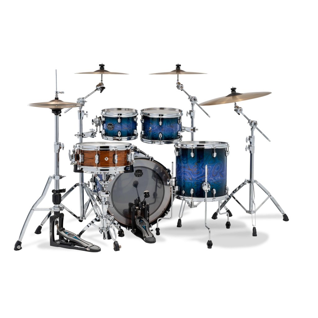 javor/ořech, 6,15mm tomy a snare (6 vrstev), 7,55mm bas. bubny (8 vrstev)