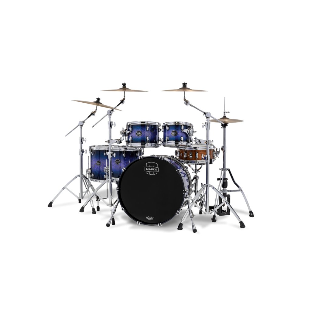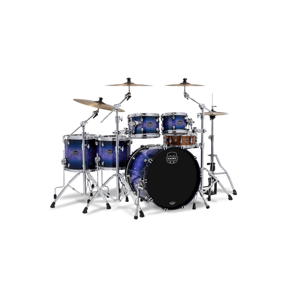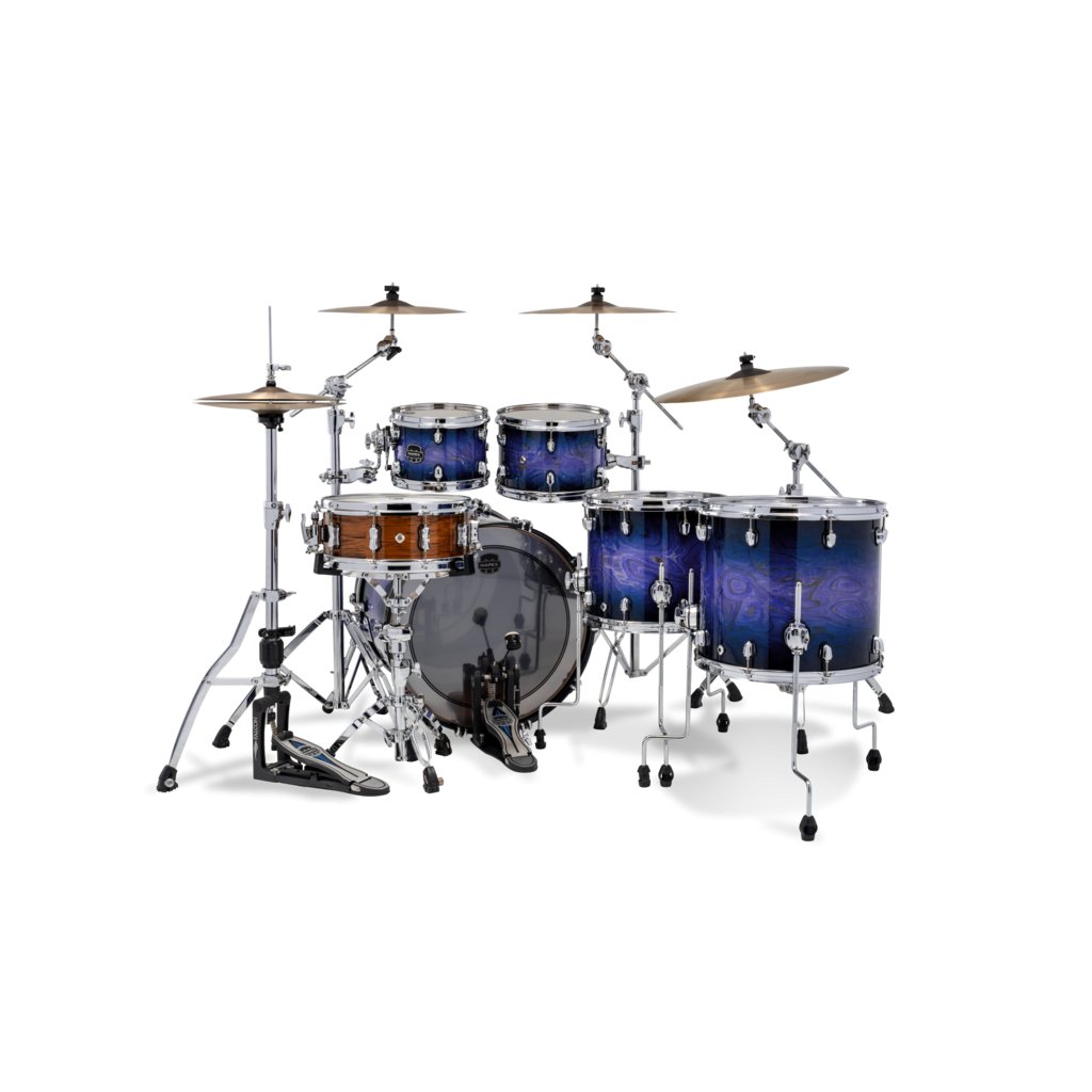 javor/ořech, 6,15mm tomy a snare (6 vrstev), 7,55mm bas. bubny (8 vrstev)