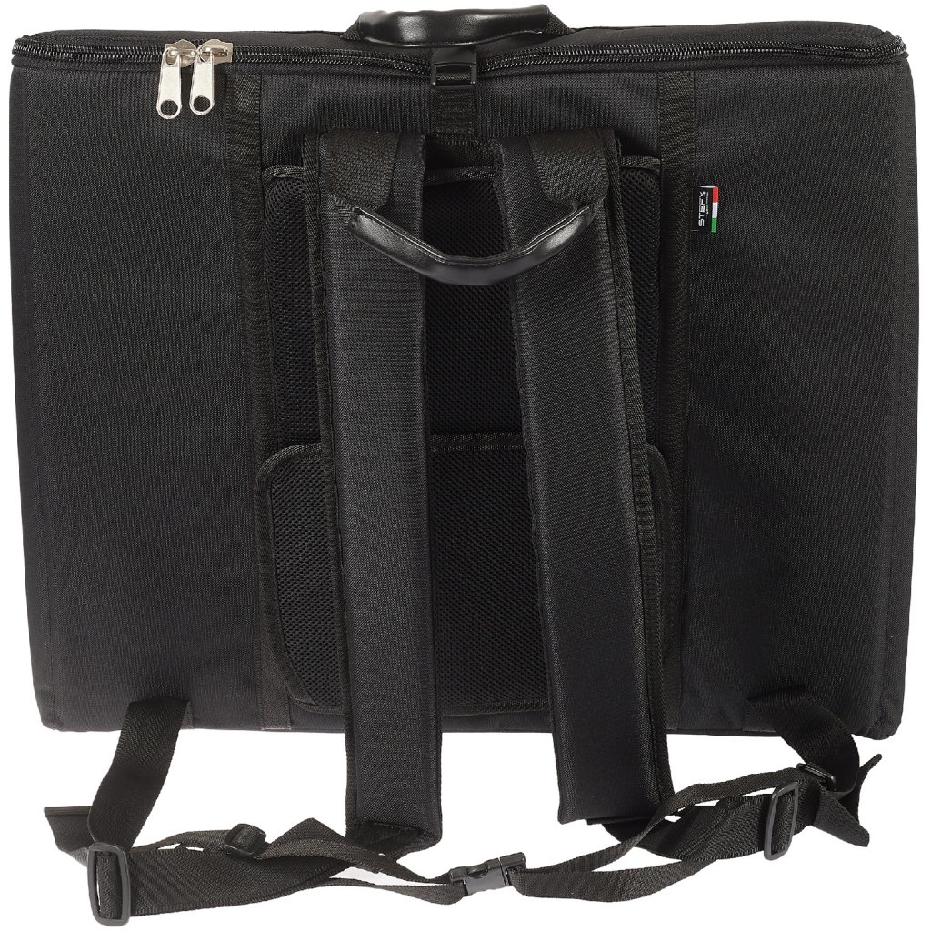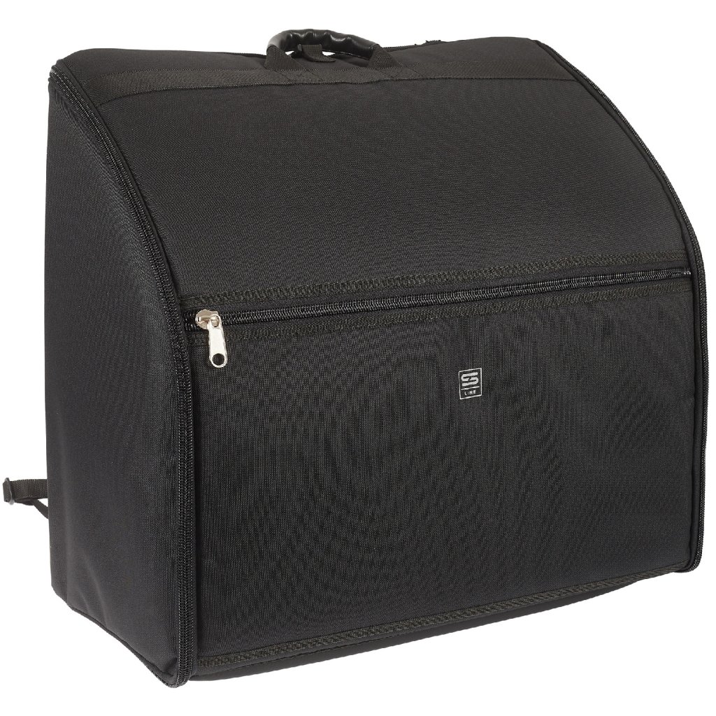 Pouzdro na akordeon Stefy Line AB200 - 120 nabízí vnější plášť zhotovený z voděodolného polyesteru (Poly 600D), vnitřek s 20 mm silným polstrováním (tvrzený polyethylen), kapsu pro uložení drobného příslušenství, madlo a popruhy na ramena, takže lze nosit i jako batoh.