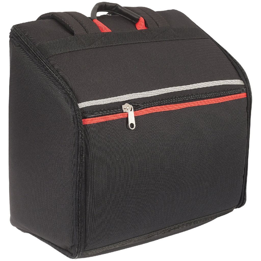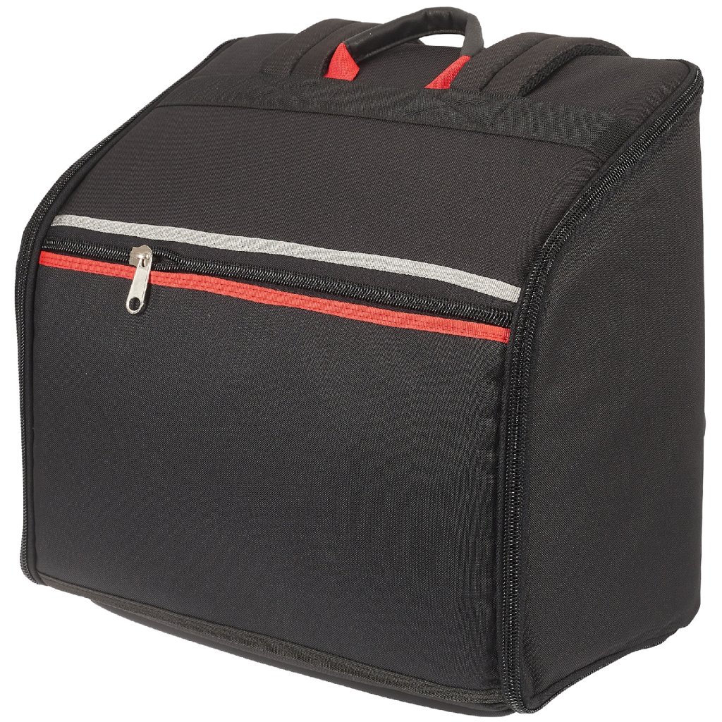Pouzdro na akordeon Stefy Line AB200 - 48 nabízí vnější plášť zhotovený z voděodolného polyesteru (Poly 600D), vnitřek s 20 mm silným polstrováním (tvrzený polyethylen), kapsu pro uložení drobného příslušenství, madlo a popruhy na ramena, takže lze nosit i jako batoh.