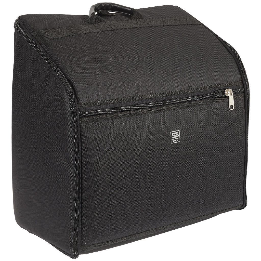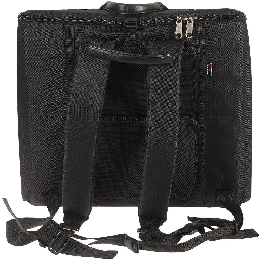 Pouzdro na akordeon Stefy Line AB200 - 72 nabízí vnější plášť zhotovený z voděodolného polyesteru (Poly 600D), vnitřek s 20 mm silným polstrováním (tvrzený polyethylen), kapsu pro uložení drobného příslušenství, madlo a popruhy na ramena, takže lze nosit i jako batoh.