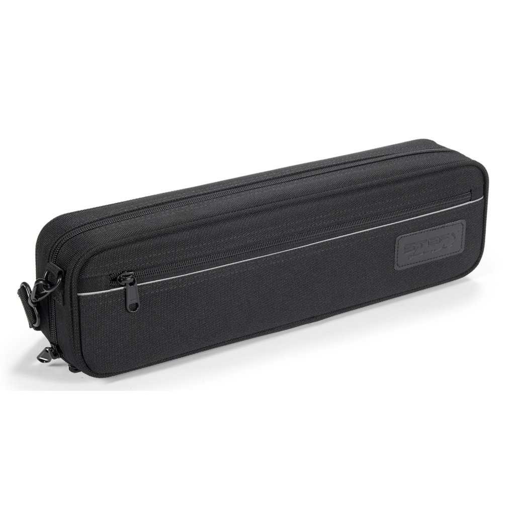 Púzdro na priečnu flautu Stefy Line WB1000 - FLTC má vonkajší plášť z vodeodolnej polyesterovej tkaniny potiahnutej PVC, polstrovaný zamatový interiér, vrecko na uloženie drobného príslušenstva a ramenný popruh.