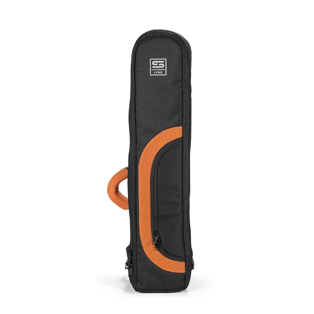 Pouzdro na sopránový saxofon Stefy Line WB1000 Soprano sax nabízí vnější plášť zhotovený z voděodolné umělé textilie Ripstop s vysokou pevností, vnitřek z prodyšné tkaniny s 30 mm silným polstrováním (tvrzený polyethylen), pouzdro na smartphone (smartphone sleeve), kapsu pro uložení drobného příslušenství, madlo pro bezpečnou manipulaci s pouzdrem a polstrované popruhy na ramena, takže lze nosit i jako batoh.