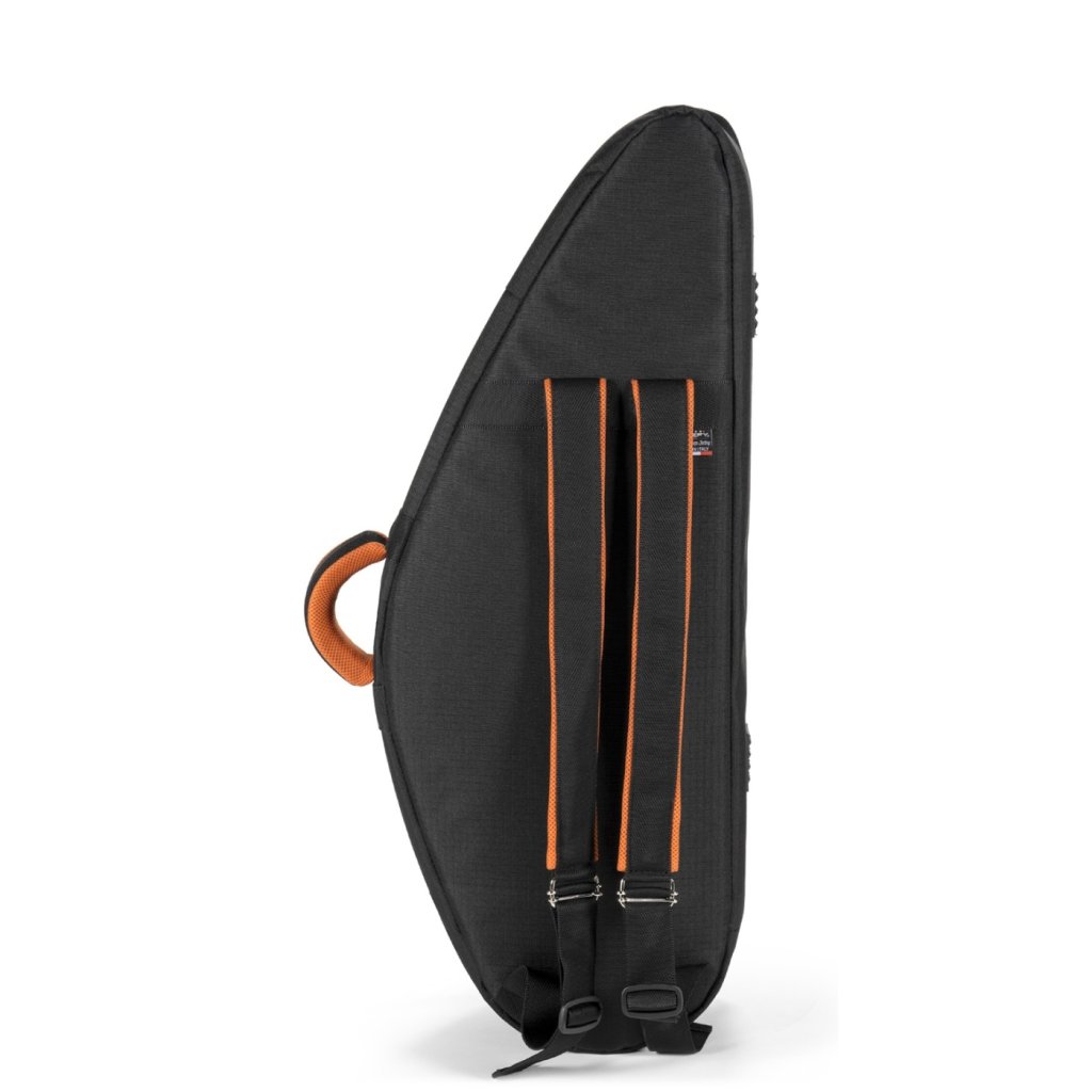 Pouzdro na sopránový saxofon Stefy Line WB1000 Tenor Sax nabízí vnější plášť zhotovený z voděodolné umělé textilie Ripstop s vysokou pevností, vnitřek z prodyšné tkaniny s 30 mm silným polstrováním (tvrzený polyethylen), pouzdro na smartphone (smartphone sleeve), kapsu pro uložení drobného příslušenství, madlo pro bezpečnou manipulaci s pouzdrem a polstrované popruhy na ramena, takže lze nosit i jako batoh.