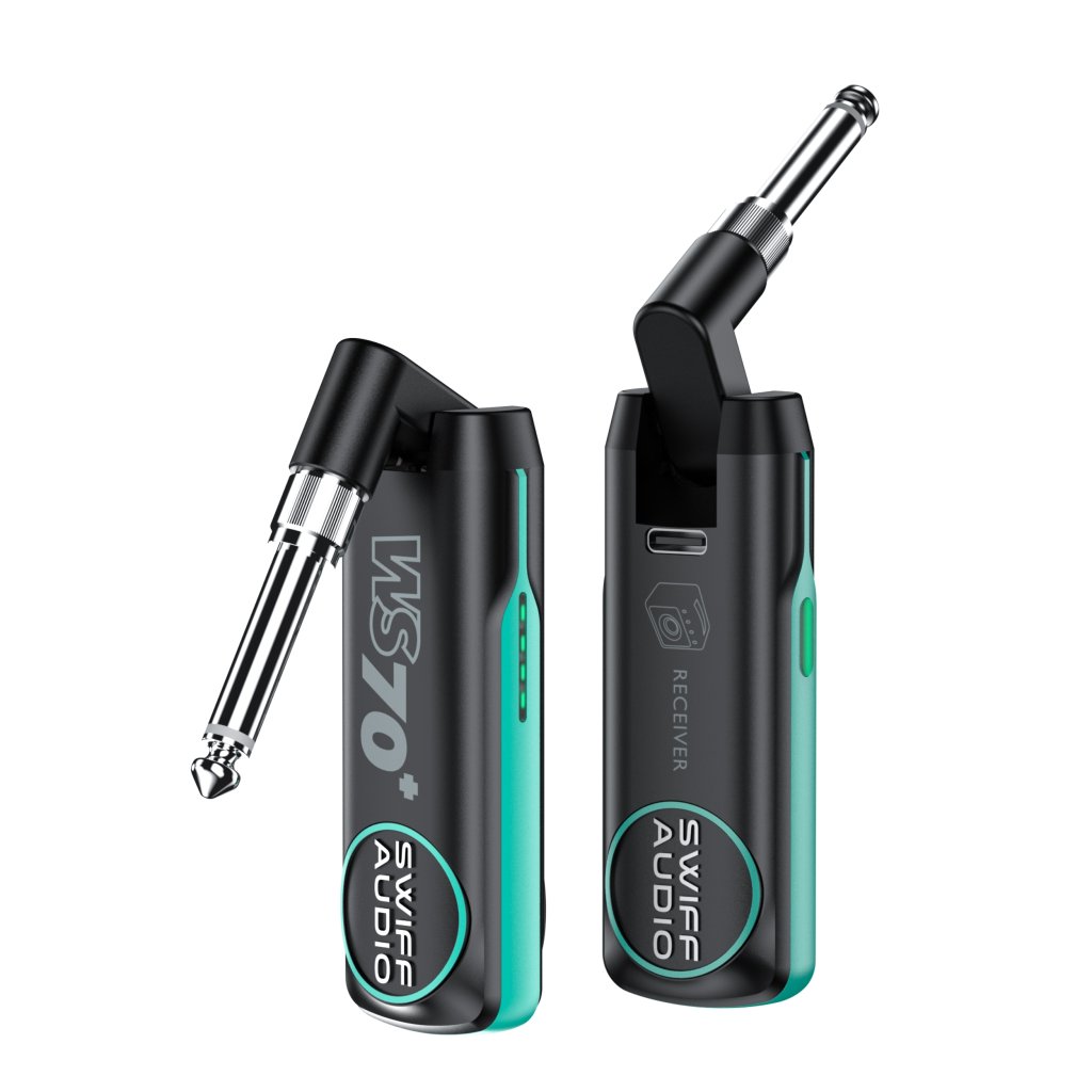 Swiff WS-70+ je vynikajúci bezdrôtový systém s konektorom 6,3 mm jack alebo 3,5 mm jack, ktorý vám poskytuje voľnosť pohybu a vynikajúci zvukový výkon. Vďaka dosahu 30 až 50 metrov vám umožňuje voľný pohyb a stále si môžete vychutnávať vynikajúci zvuk bez obmedzení. Vďaka nízkemu výstupnému oneskoreniu iba 1 ms je zabezpečený okamžitý a synchronizovaný prenos zvuku.
