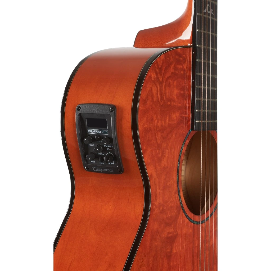 Tanglewood TA4CE HN je elektroakustická kytara s moderním tvarem těla typu „Super Folk“, které je v porovnání s modely Dreadnought užší a mělčí. Přední deska kytary je zhotovena z vrstveného figurovaného jasanu (quilted ash), zadní deska a luby jsou vyrobeny z vrstveného javoru. Luxusní kresbu figurovaného jasanu zvýrazňuje lesklý finiš Shoreline Amber Gloss.