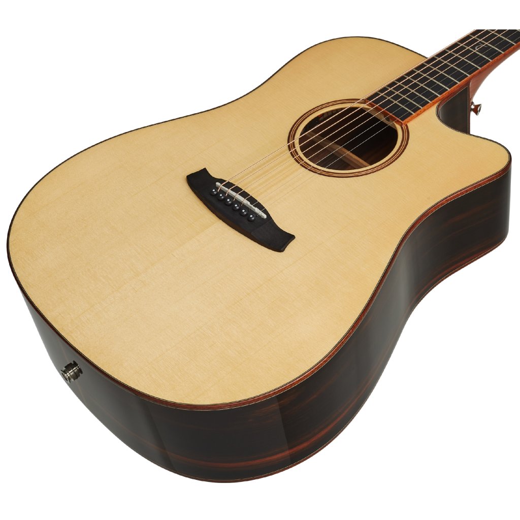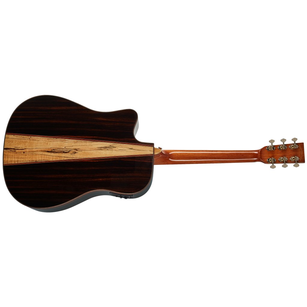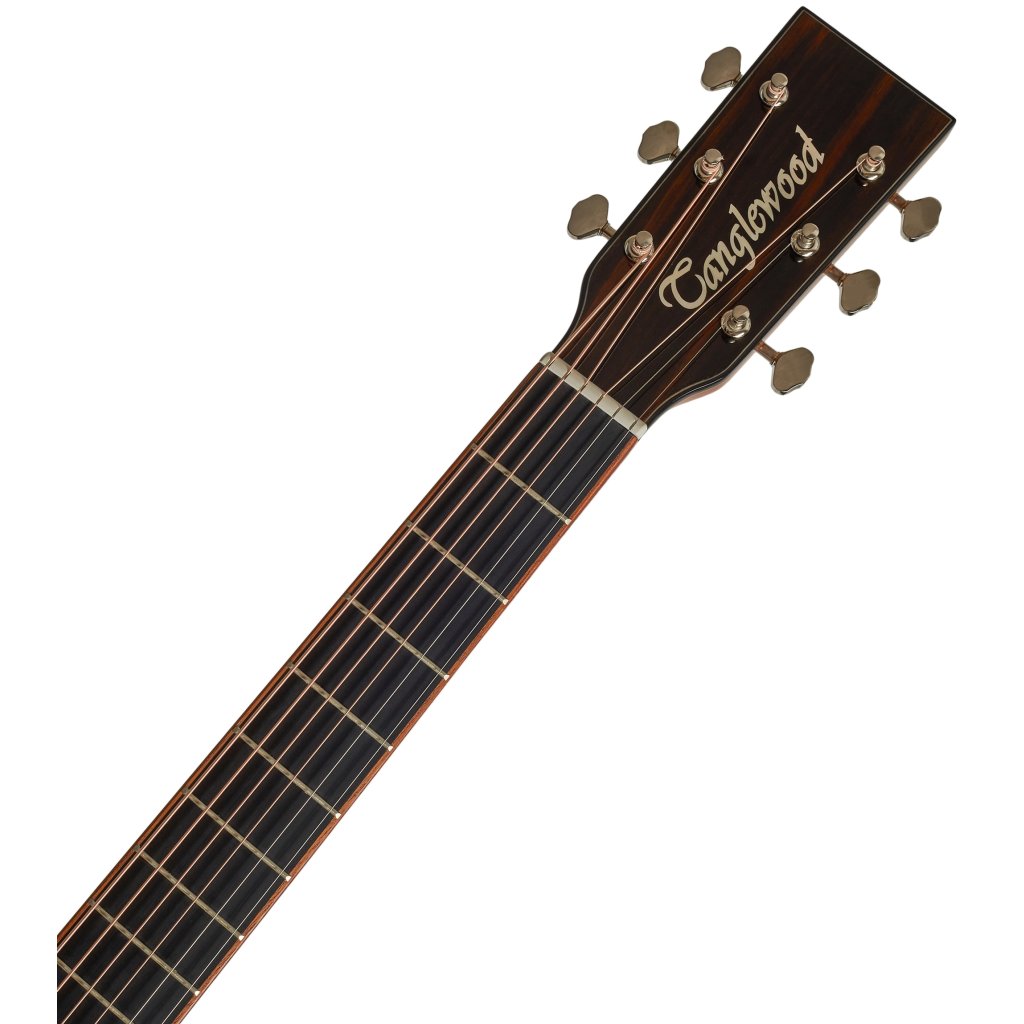 Britská značka Tanglewood predstavuje cenovo dostupnejšie akustické gitary v retro aj moderných designoch. TJ 5 CE je elektroakustická gitara s veľkým rezonantným telom typu Dreadnought z radu Java Series. Predná doska gitary je zhotovená z masívu smreka, zadná doska a luby sú vyrobené z preglejkových materiálov s výraznou kresbou – ebenu amara/makasar na luboch a krídlach zadnej dosky a stredového vklineného dielu zadnej dosky z mangovníka (spalted mango). K mahagónovému krku je prilepený hmatník z moderného kompozitného materiálu. Struny sú cez plastový nultý pražec uchytené v otvorených niklových ladiacich mechanikách a kobylke z kompozitu. Pekné spracovanie podčiarkuje perleťový inlay na dvanástom podvale (Mother-of.Pearl) a rozeta a obvodová lemovka z mahagónových a plastových liniek (ABS). Možnosť ozvučenia ponúka elektronika Fishman Presys s trojpásmovým ekvalizérom a zabudovanou ladičkou.