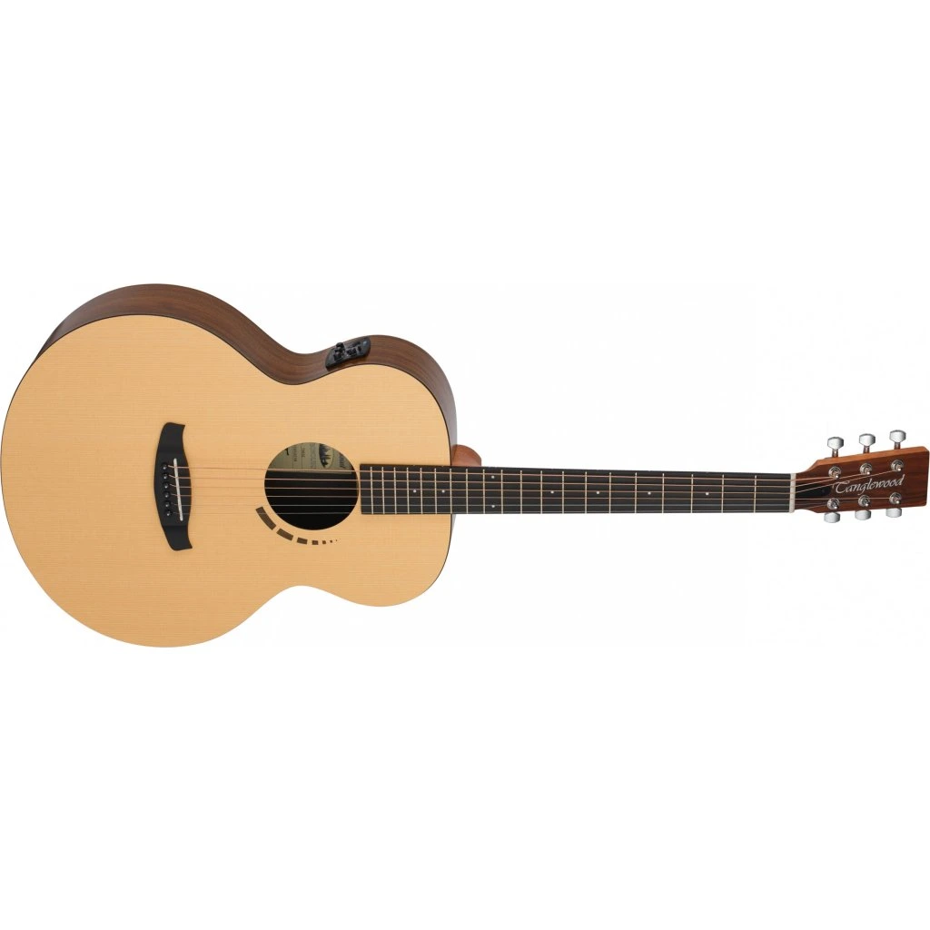 Tanglewood TM3E je elektroakustická gitara zo série Metropolitan s telom v štýle orchestra, ktoré oceníte pri hre prstami alebo trsátkom. Telo gitary je vyrobené z vysoko odolného laminátu HPL v smrekovom prevedení (predná strana) a havajského koa (zadná strana a boky). Vďaka použitiu laminátu HPL je nástroj mimoriadne odolný voči zmenám počasia a vlhkosti.