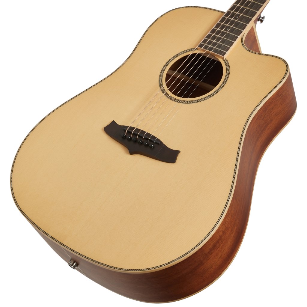 Struny jsou přes nultý a sedlový pražec z materiálu NuBone uchyceny v ladicích die-cast mechanikách a kobylce z purpleheartu. Pěkné zpracování podtrhuje oboustranná lemovka těla a rozeta a výložka topu ve vzoru rybí kosti (Herringbone).