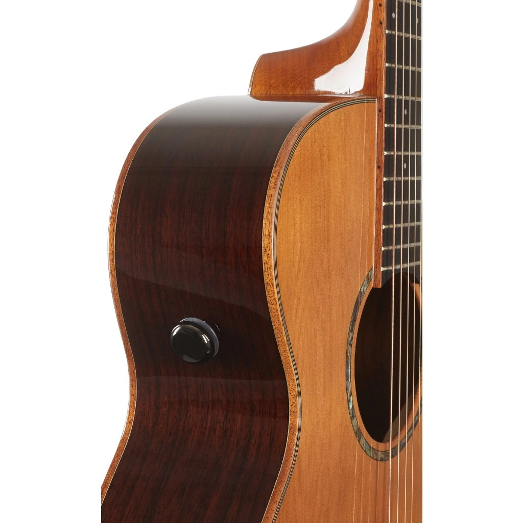 Ke krku ze dřeva nato, označovaného jako “Eastern Mahogany”, je přilepen hmatník z kompozitního materiálu Eboncore v dekoru ebenu osazený jednadvaceti pražci. Dohmat na vyšších polohách hmatníku usnadňuje praktický spodní výřez těla. Struny jsou uchyceny v chromovaných mechanikách značky Grover a kobylce z kompozitu. Pěkné zpracování podtrhuje perleťová rozeta (abalone), mahagonová obvodová lemovka těla a hmatníku a palisandrová dýha na hlavici ozdobená firemním logem.
