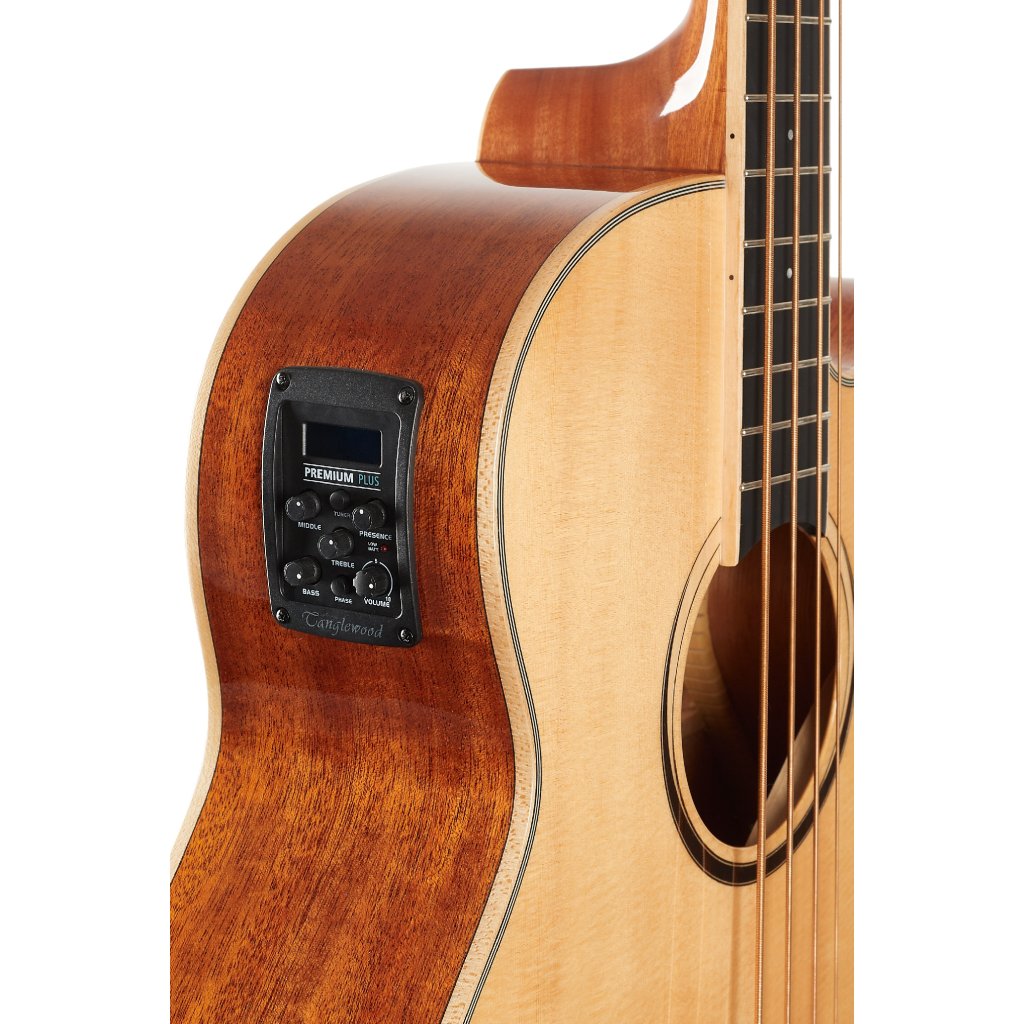Elektronika Tanglewood Premium Plus Bass s piezo snímačmi zabezpečuje prirodzený akustický zvuk aj pri zapojení do aparátu. S ovládacími prvkami pre hlasitosť, presence, basy, stredy, výšky a prepínačom fázy si zvuk ľahko prispôsobíte podľa potreby. Integrovaná ladička pridáva ďalšiu praktickú funkciu, ktorá umožňuje rýchle a presné ladenie kedykoľvek počas hrania.