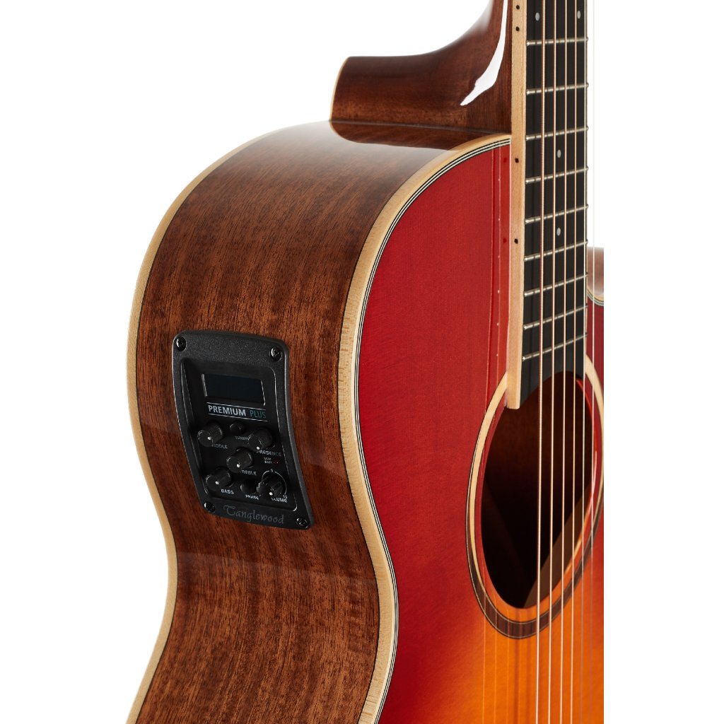Možnosti ozvučenia zahŕňajú firemný predzosilňovač TW Premium Plus so štvorpásmovým ekvalizérom, funkciou Phase a integrovanou ladičkou. Struny držia v chrómových die-cast mechanikách a kompozitnej hlavici prostredníctvom nultého a sedlového pražca NuBone. Pekné spracovanie podčiarkuje obojstranné javorové lemovanie tela, Mother of Pearl pozičné bodky na hmatníku, stredový prúžok na zadnej doske a lesklá povrchová úprava Cherry Sunburst Gloss na prednej doske.