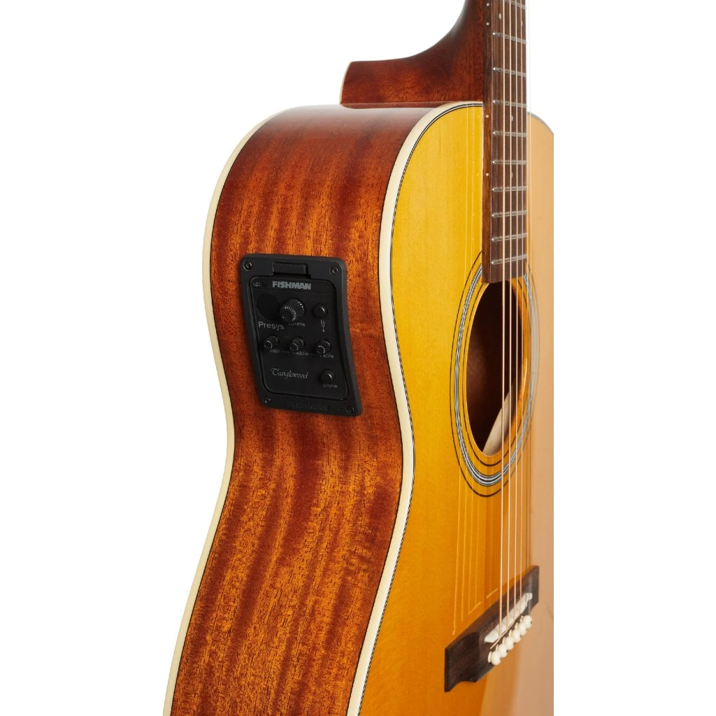 Zvukový systém je vybavený elektronikou Fishman Presys s trojpásmovým ekvalizérom a zabudovanou ladičkou. Struny sú uchytené vo firemných ladiacich mechanikách (Nickel Waverly style) a orechovom hmatníku prostredníctvom kosteného pražca a sedla. Pekné spracovanie podčiarkuje lesklá vrchná úprava Antique Natural a praktický pickguard, ktorý zároveň chráni lak nástroja.