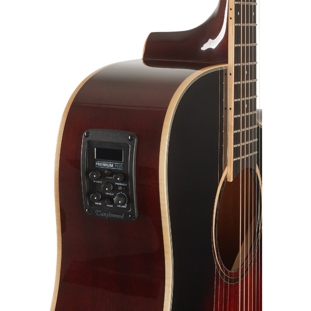 Možnosti ozvučenia zahŕňajú firemný predzosilňovač TW Premium Plus so štvorpásmovým ekvalizérom, funkciou Phase a vstavanou ladičkou. Struny držia v chrómovej die-cast mechanike a kompozitnej hlavici prostredníctvom nultého a sedlového pražca NuBone. Pekné spracovanie podčiarkuje javorové lemovanie tela a rozeta, stredový pruh na zadnej doske, perleťové polohové bodky a jesenná lesklá povrchová úprava Vintage Burst na prednej doske.