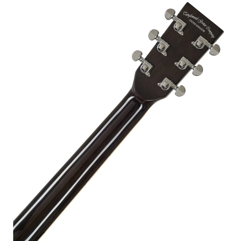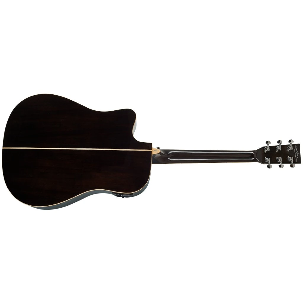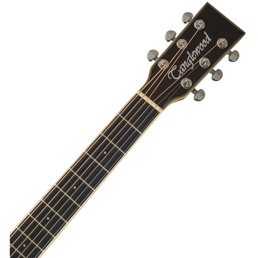 Britská značka Tanglewood predstavuje cenovo dostupnejšie akustické gitary v retro aj moderných designoch. TW5 CE BS je elektroakustická gitara s veľkým rezonantným telom typu Dreadnought z radu Winterleaf. Telo gitary je zhotovené z mahagónu - predná doska z masívu, zadná doska a luby z preglejkového mahagónu. Ku krku z dreva nato, označovaného ako "eastern mahogany", je prilepený hmatník z moderného kompozitného materiálu osadený dvadsiatimi pražcami. Dohmat na vyšších polohách hmatníka uľahčuje praktický spodný výrez tela. Možnosť ozvučenia ponúka firemný preamp TW Premium Plus so štvorpásmovým ekvalizérom, funkciou Phase a integrovanou ladičkou. Struny sú cez nultý a sedlový pražec z materiálu NuBone uchytené v chrómovaných die-cast mechanikách a kobylke z kompozitu. Pekné spracovanie podčiarkuje javorová lemovka tela a rozeta, stredový prúžok na zadnej doske, perleťové pozičné bodky (MoP) a finiš prednej dosky Black Shadow Gloss.