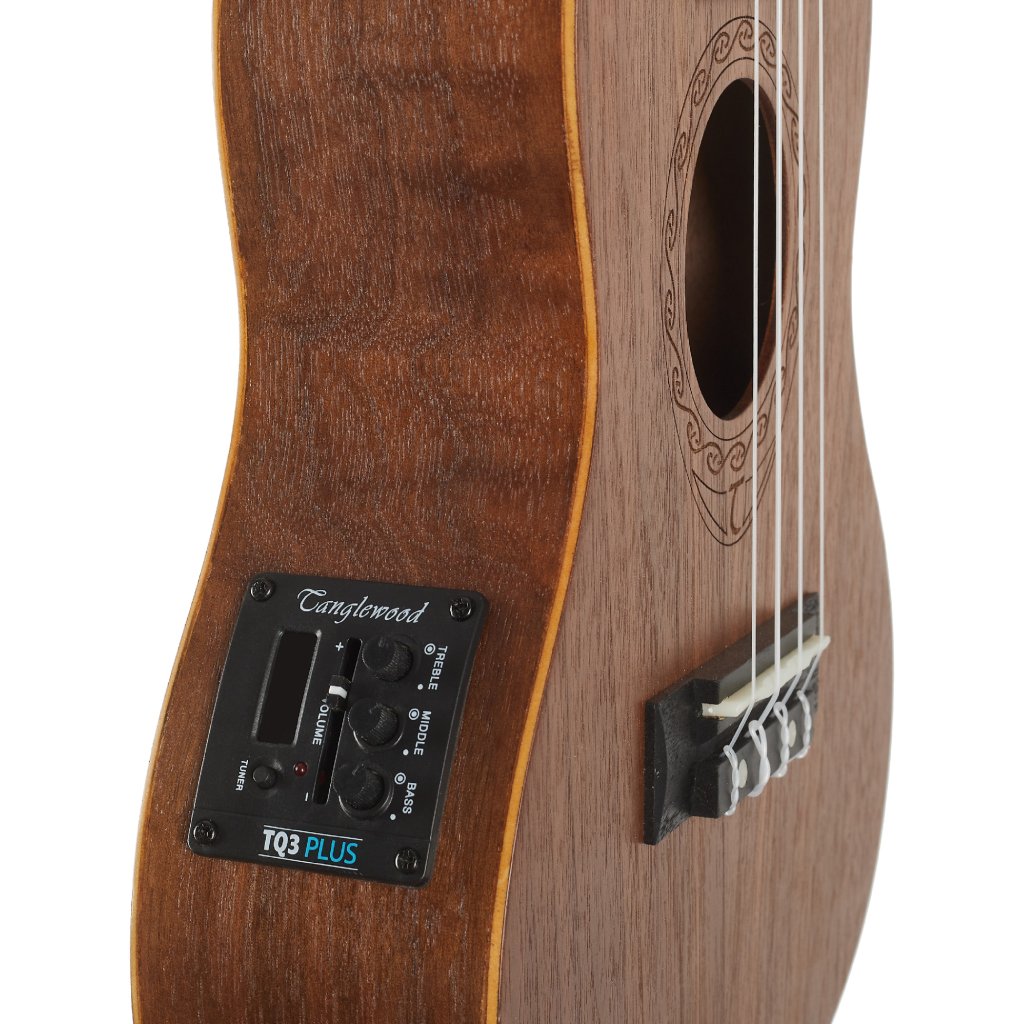 TWT 3 E je cenovo dostupné elektroakustické ukulele Tanglewood koncertnej veľkosti s laminovaným telom z čierneho orecha. Klenutá zadná doska nástroja prispieva k lepšej zvukovej projekcii a väčšej hlasitosti ukulele. Mahagónový krk je prilepený k modernému kompozitnému hmatníku osadenému osemnástimi pražcami. Struny sú osadené v pochrómovaných ladiacich mechanikách gitarového typu a kompozitnom hmatníku. O ozvučenie sa stará firemný predzosilňovač s integrovanou ladičkou.