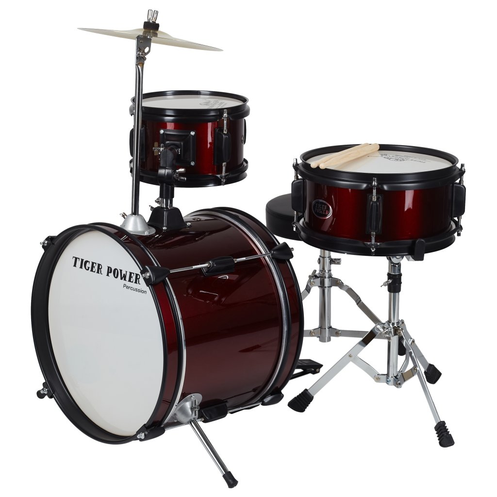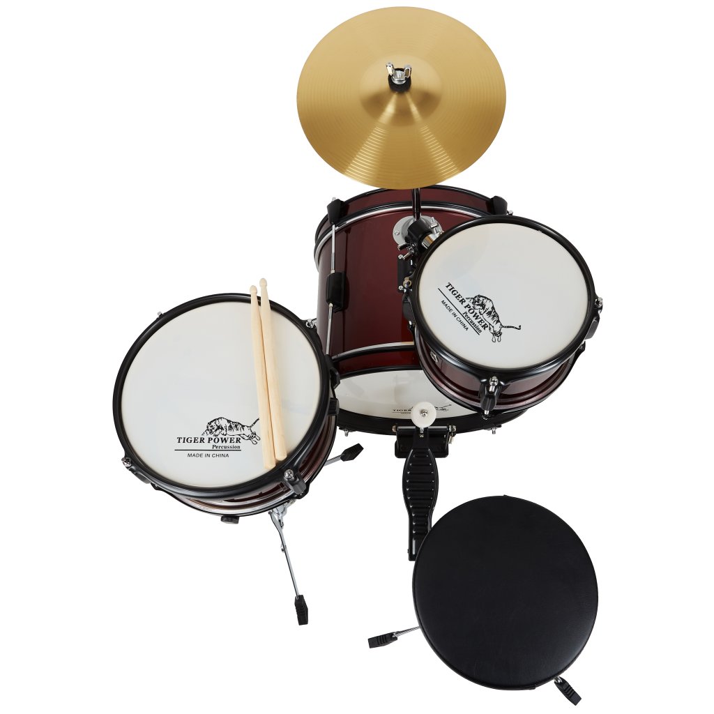 Vďaka robustnej konštrukcii vydrží táto súprava intenzívne bubnovanie a je ideálna pre deti vo veku 3 až 5 rokov. Basový bubon je vybavený gumovými nožičkami, ktoré zaisťujú stabilitu a chránia podlahu pred poškodením. Súprava obsahuje aj pedál pre basový bubon a pár 30 cm paličiek, takže deti majú všetko, čo potrebujú na to, aby mohli začať hrať na bicie.