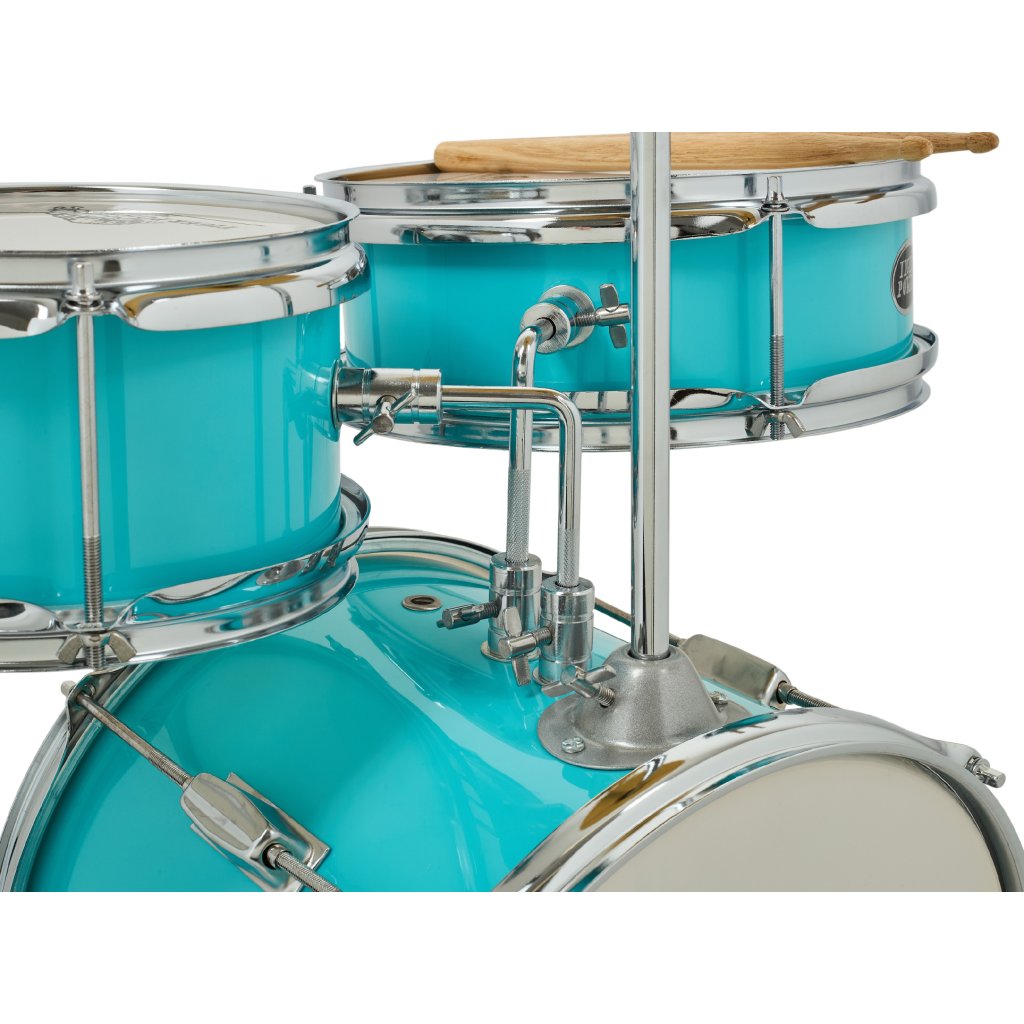 Vďaka robustnej konštrukcii vydrží táto súprava intenzívne bubnovanie a je ideálna pre deti vo veku 3 až 5 rokov. Basový bubon je vybavený gumovými nožičkami, ktoré zaisťujú stabilitu a chránia podlahu pred poškodením. Súprava obsahuje aj pedál pre basový bubon a pár 30 cm paličiek, takže deti majú všetko, čo potrebujú na to, aby mohli začať hrať na bicie.
