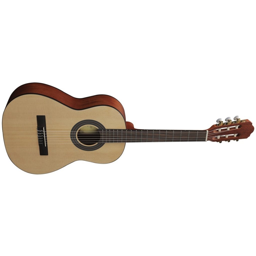 Toledo Estudio ST34AS je cenovo dostupná detská klasická gitara vo veľkosti 3/4 vhodná pre začínajúcich hráčov. Je vybavená laminovanou smrekovou rezonančnou doskou, laminovanou mahagónovou zadnou doskou a lubmi, krkom z okoumé a palisandrovým hmatníkom a kobylkou. Struny sú uchytené v klasických otvorených ladiacich mechanikách s imitáciou perleťových kolíkov. Štýlovú povrchovú úpravu podčiarkuje čierne obvodové lemovanie doplnené čiernymi a bielymi linkami, ozdobná rozeta a saténový povrch (open pore satin natural).