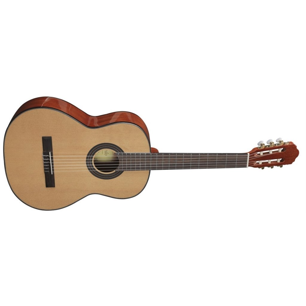 Klasická gitara Toledo Estudio ST44AG je cenovo dostupný nástroj vhodný pre začiatočníkov. Je vybavená laminovanou smrekovou rezonančnou doskou, laminovanou mahagónovou zadnou doskou a lubmi, krkom z okoumé a palisandrovým hmatníkom a kobylkou. Struny sú uchytené v klasických otvorených ladiacich mechanikách s imitáciou perleťových kolíkov. Štýlové spracovanie podčiarkuje čierne obvodové lemovanie doplnené čiernymi a bielymi linkami, ozdobná rozeta a lesklá povrchová úprava.