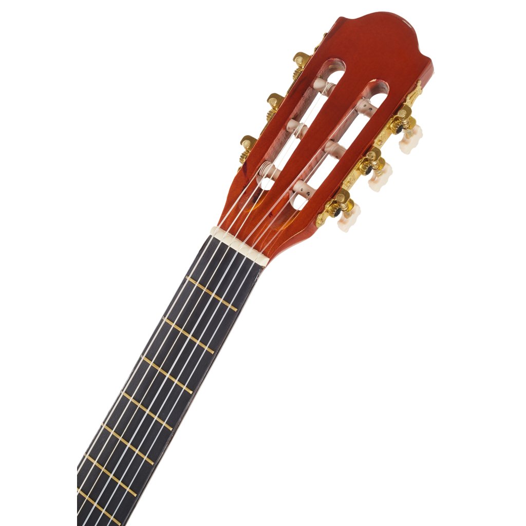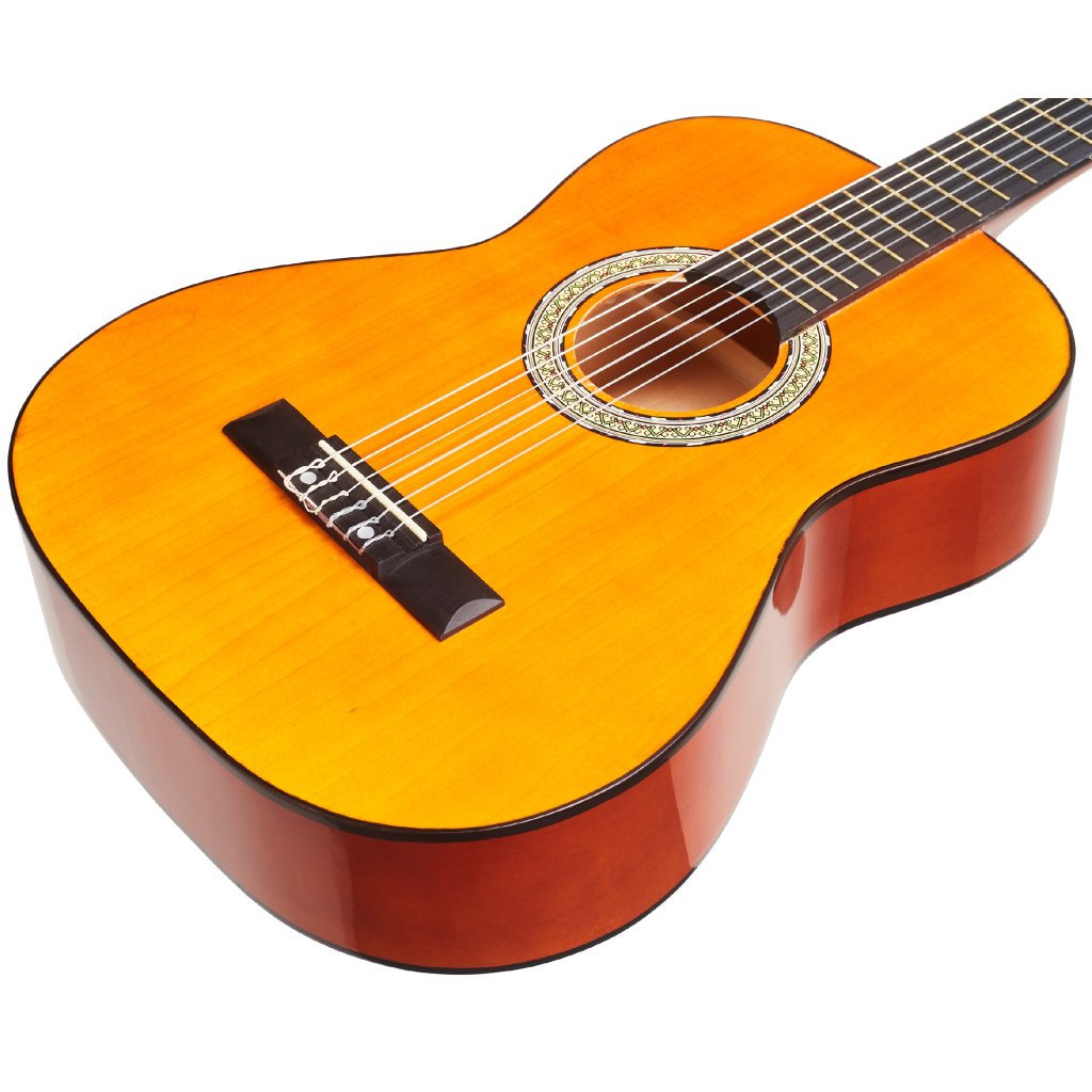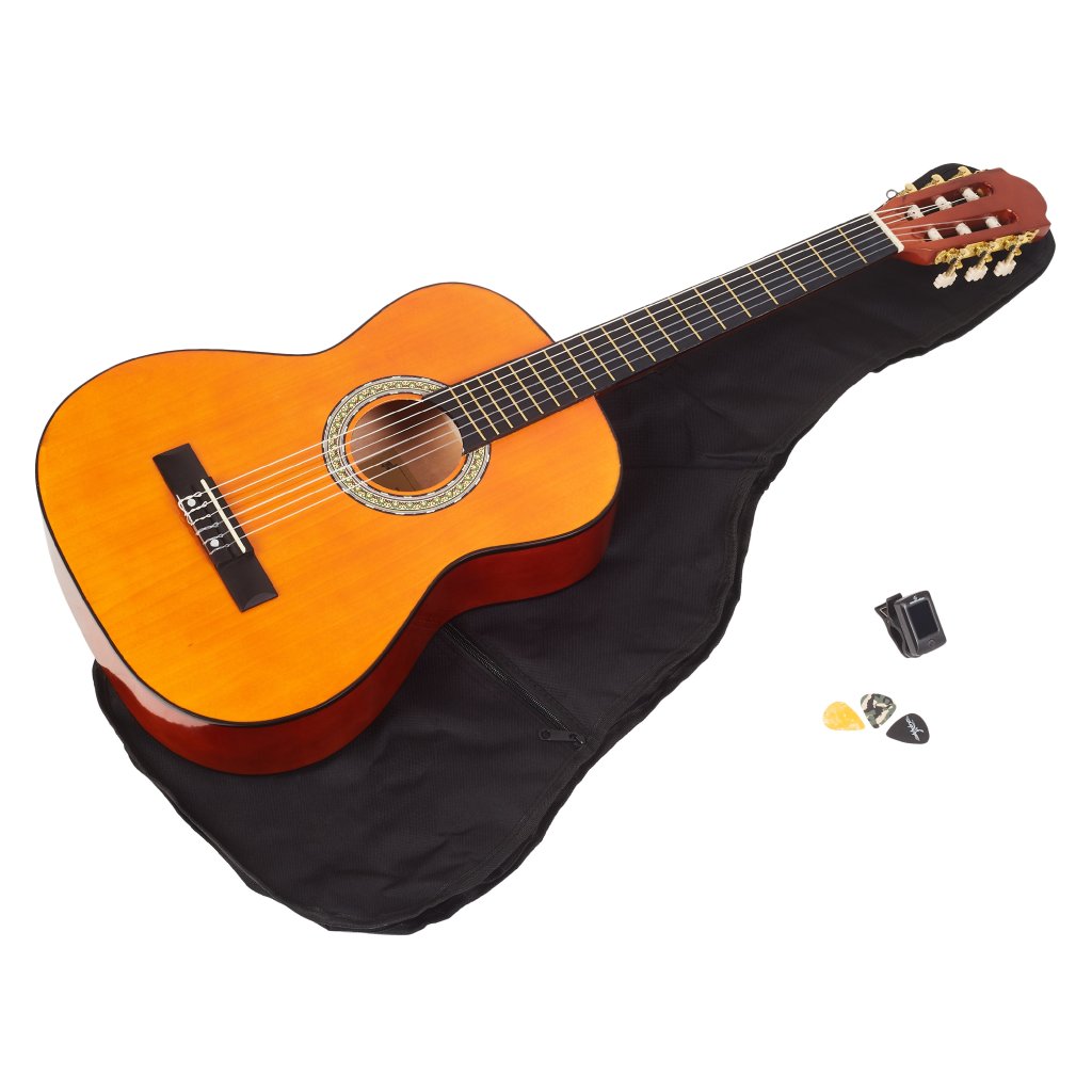 Táto cenovo dostupná gitarová súprava pre začínajúcich hudobníkov obsahuje všetko, čo budete potrebovať pri svojich prvých krokoch. V balení nájdete klasickú gitaru veľkosti 3/4 s nylonovými strunami, klipovú ladičku na jednoduché a rýchle ladenie, trsátka a puzdro s predným vreckom na príslušenstvo.