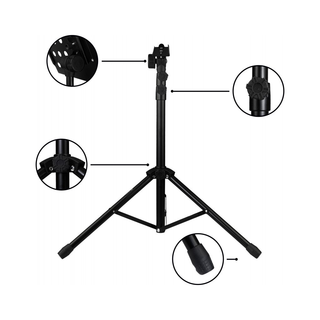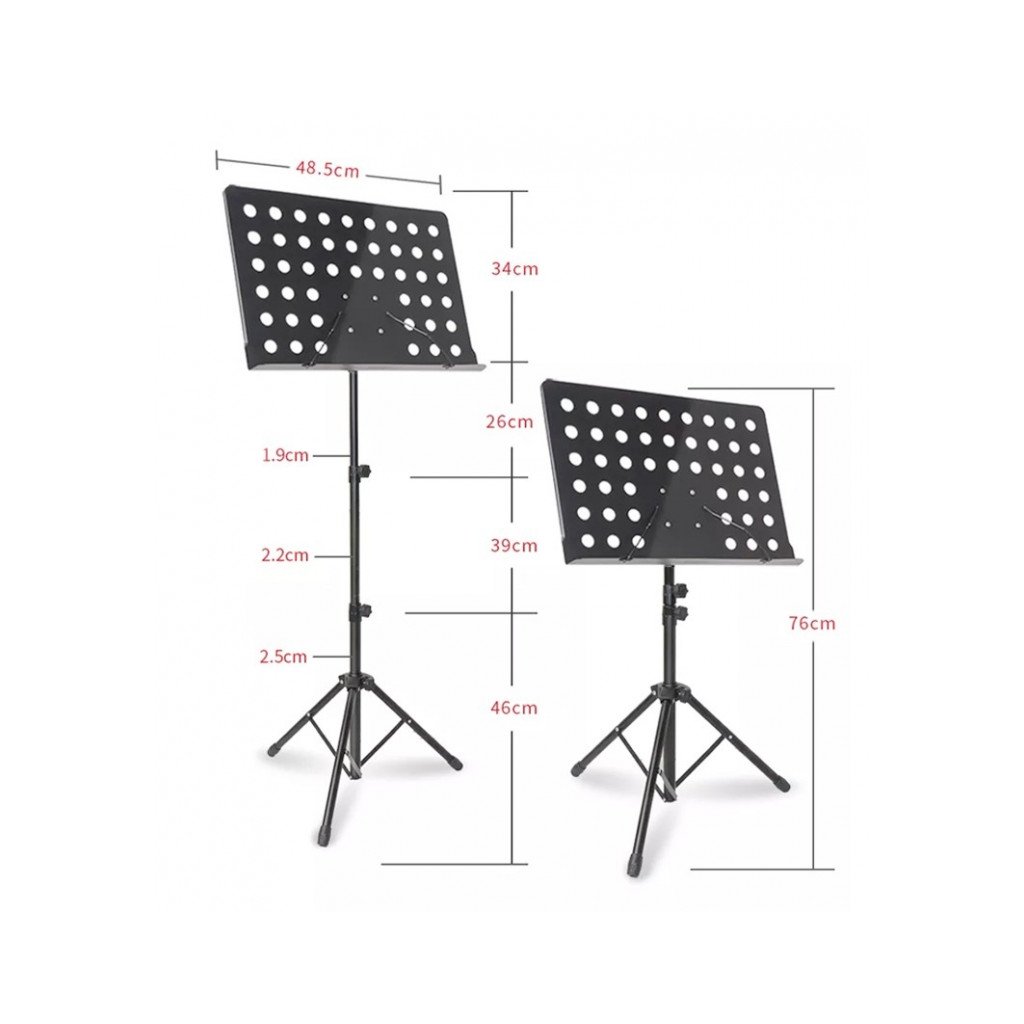 Teleskopický notový stojan Veles-X FOSMS (Professional Folding Orchestra Sheet Music Stand). Funguje skvele ako stabilný podklad pre klasické hudobné noty a knihy, čím maximalizuje pohodlie učiteľov pri práci.