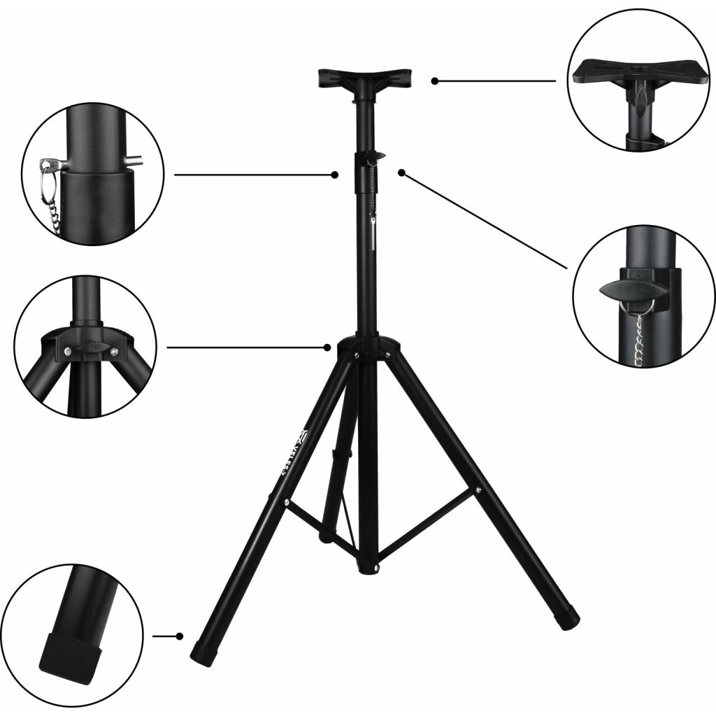 Robustný reproduktorový stojan, vhodný pre väčšinu reprobední na trhu. Pevná oceľová konštrukcia unesie záťaž až 20 kg. Kompaktné rozmery zloženého stojanu a nízka hmotnosť vám umožní jednoduchý transport medzi produkciami. Súčasťou balenia je bezpečnostná závlačka s nylonovým opaskom.