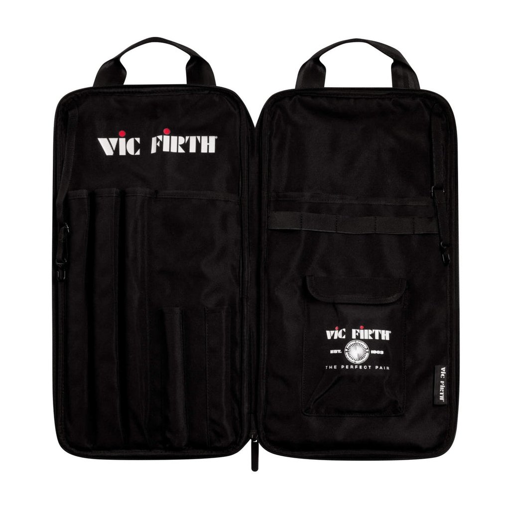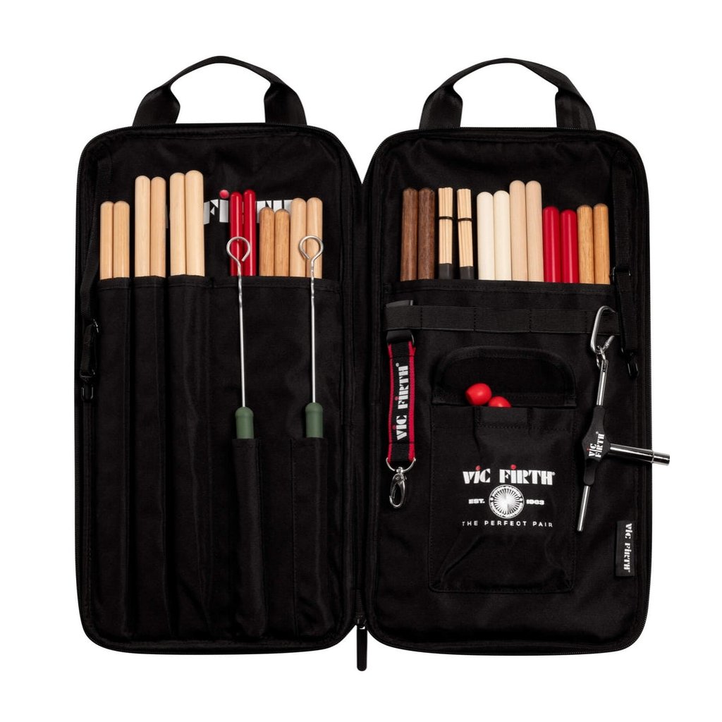 Obal na paličky Classic Stick Bag od společnosti Vic Firth je osvědčenou klasikou, která slouží bubeníkům již po desetiletí, nyní s ještě více funkcemi. Přední a zadní kapsy na zip, spolu s elastickou přední sítí, poskytují bezpečný prostor pro všechny nezbytnosti. Uvnitř se nacházejí tři šité kapsy, které udržují paličky dokonale spárované. Obal je vyroben z odolných a voděodolných materiálů s vyztuženým šitím na švech a kapsách. Nastavitelné popruhy pro upevnění na floor tom obsahují speciální háčky pro dokonalé připevnění. Pojme až 12 párů paliček, což z něj činí ideálního společníka na každý koncert nebo zkoušku.