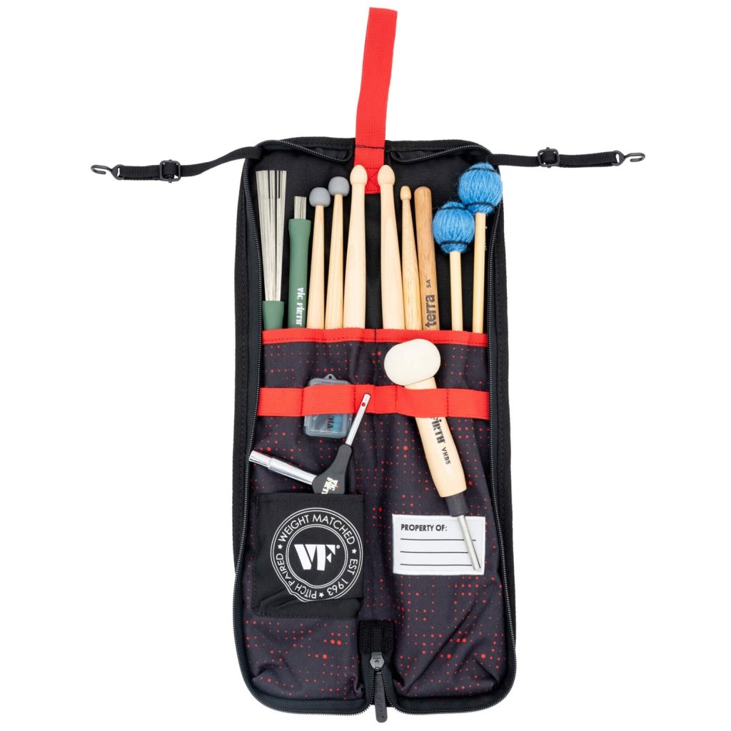 Vic Firth Essential Stick Bag je ideálnou voľbou pre bubeníkov, ktorí preferujú jednoduchosť. Tento obal je inteligentne navrhnutý tak, aby pojal štyri až päť párov paličiek bez ohľadu na typ. Je vybavený systémom háčikov a popruhov, ktorý umožňuje bezpečné zavesenie na floor tom alebo snare. Popruhy sa elegantne ukladajú do obalu, keď práve nie sú potrebné. Vnútorné vrecko a slučka na bubenícky kľúč robia z tohto obalu ideálneho spoločníka pre bubeníkov na cestách. Vyrobené z vodeodolného nylonu.