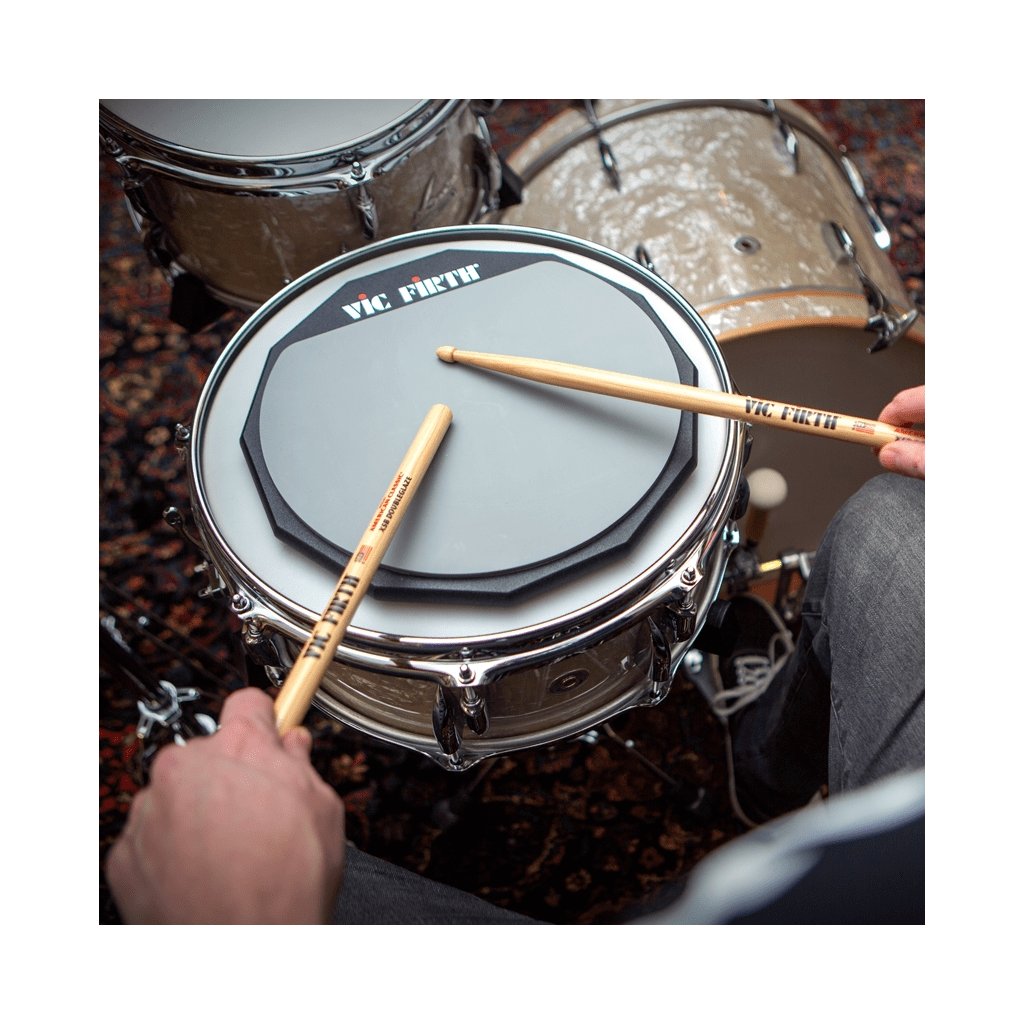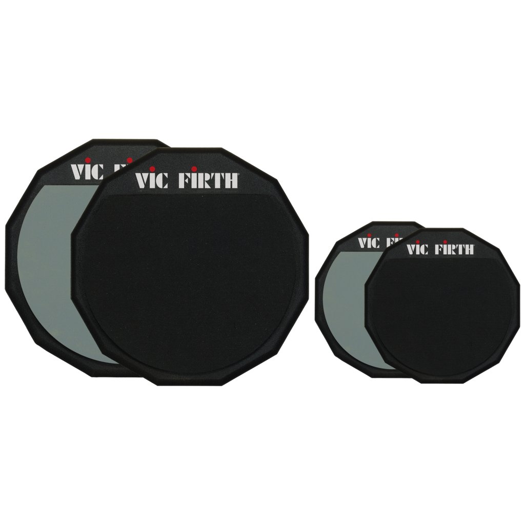 Tréningové podložky Vic Firth sú k dispozícii v dvoch veľkostiach, 6 alebo 12 palcov, a v dvoch prevedeniach - základná verzia je vyrobená z mäkkej gumy pre naozaj tichý tréning, zosilnené verzie označené písmenom "D" majú navyše možnosť použiť hrubší gumový základ pre intenzívnejší tréning a možnosť počuť každý úder, navyše majú drevenú základňu.