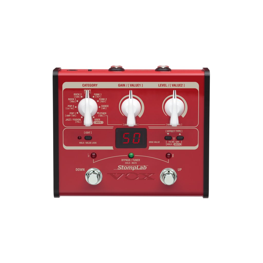 Hlavné vlastnosti: 100 presetov roztriedených do kategórií podľa štýlov – rock, blues, metal a pop Jednoduché rozhranie - aj začiatočník ľahko nájde zvuk, ktorý hľadá! StompLab IG poskytuje 103 typov modelingových efektov, StompLab IIG poskytuje 104 typov, StompLab IB poskytuje 60 typov a StompLab IIB poskytuje 61 typov. Každý efekt sa môže pochváliť zvukovým generátorom, ktorý pochádza z populárnej VT+ série modelingových aparátov a série multiefektov ToneLab Je možné editovať a uložiť 20 vlastných nastavení Zároveň je možné použiť až 8 efektov Premyslený vzhľad, ktorý bol pri starších efektoch nepredstaviteľný StompLab IIG a IIB disponujú expression pedálom, ktorý umožňuje ovládať rôzne parametre zvuku vrátane wah a hlasitosti. Dvojité napájanie – batériami alebo AC adaptérom (predáva sa zvlášť) Zabudovaná chromatická ladička s funkciami bypass a mute..